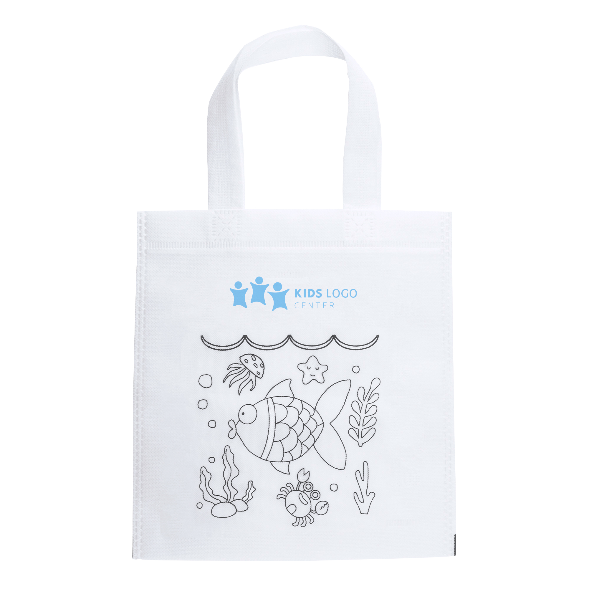Bolsa infantil de non-woven con diseño para colorear. Incluye 5 ceras en colores variados.