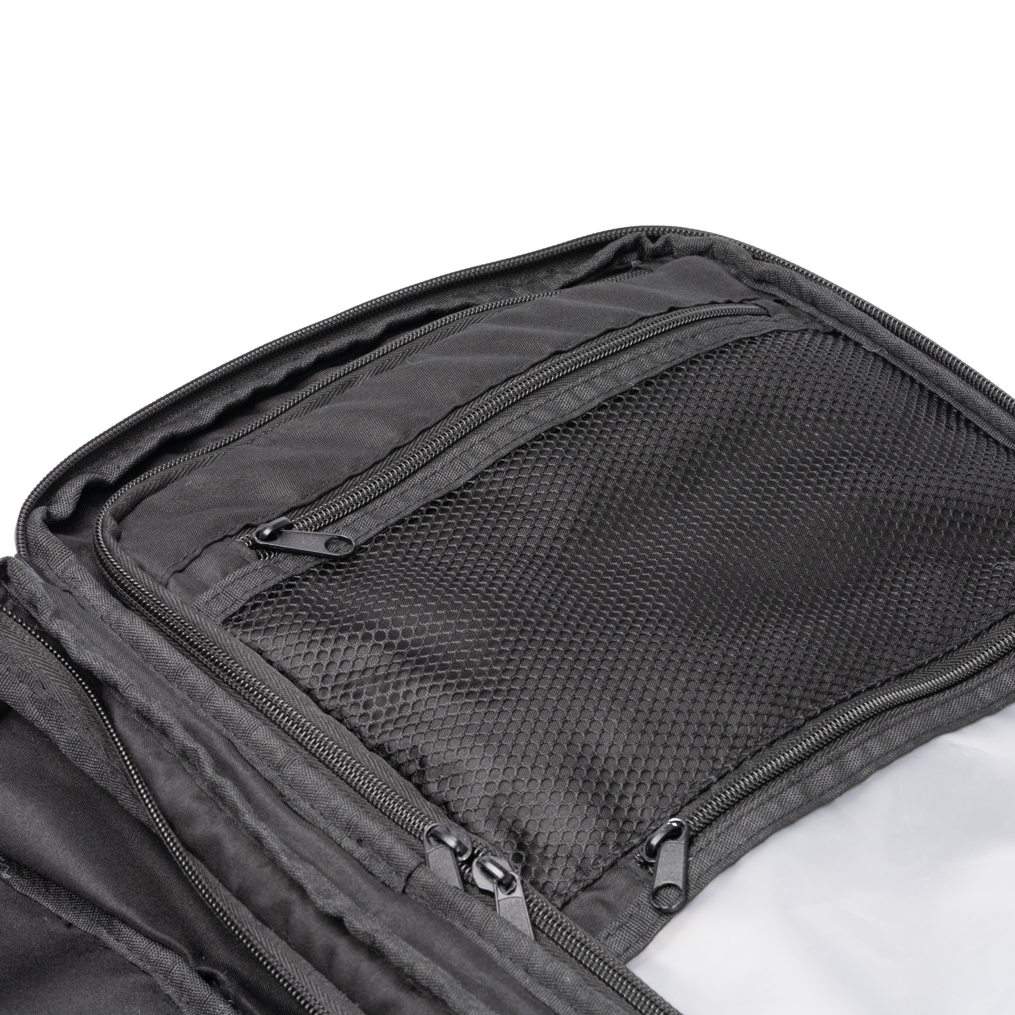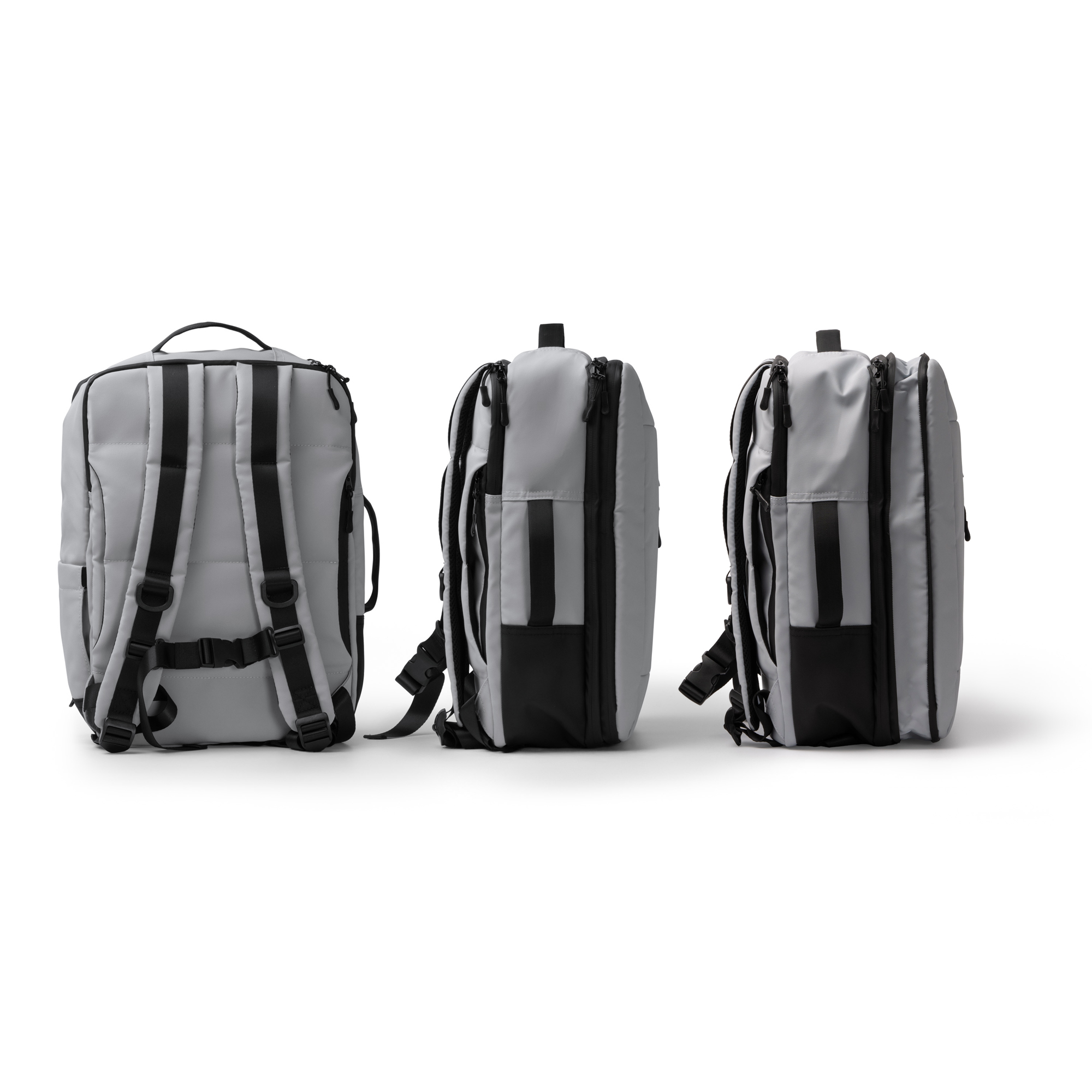 Mochila de viaje elaborada en PU Leather. Compartimento principal extensible. Compartimento antirrobo con bolsillo para dispositivo 12″. Bolsillos interiores y exteriores con cierre de cremallera. Cremallera principal repelente al agua. Bolsillo laterial elástico. Apertura para trolley. Espalda y asas acolchadas.