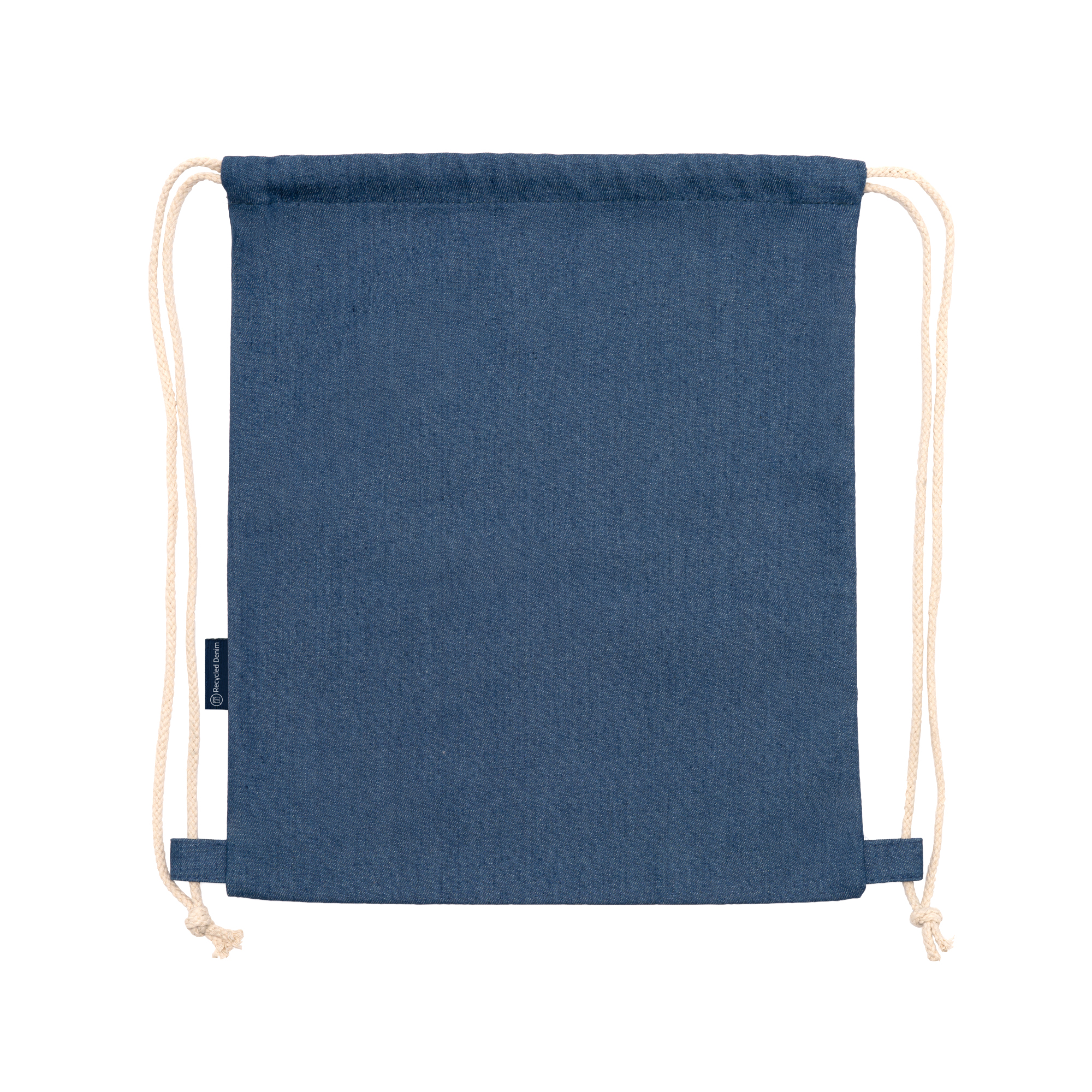 Mochila realizada en tejido vaquero reciclado con cuerdas de algodón de 8 mm.