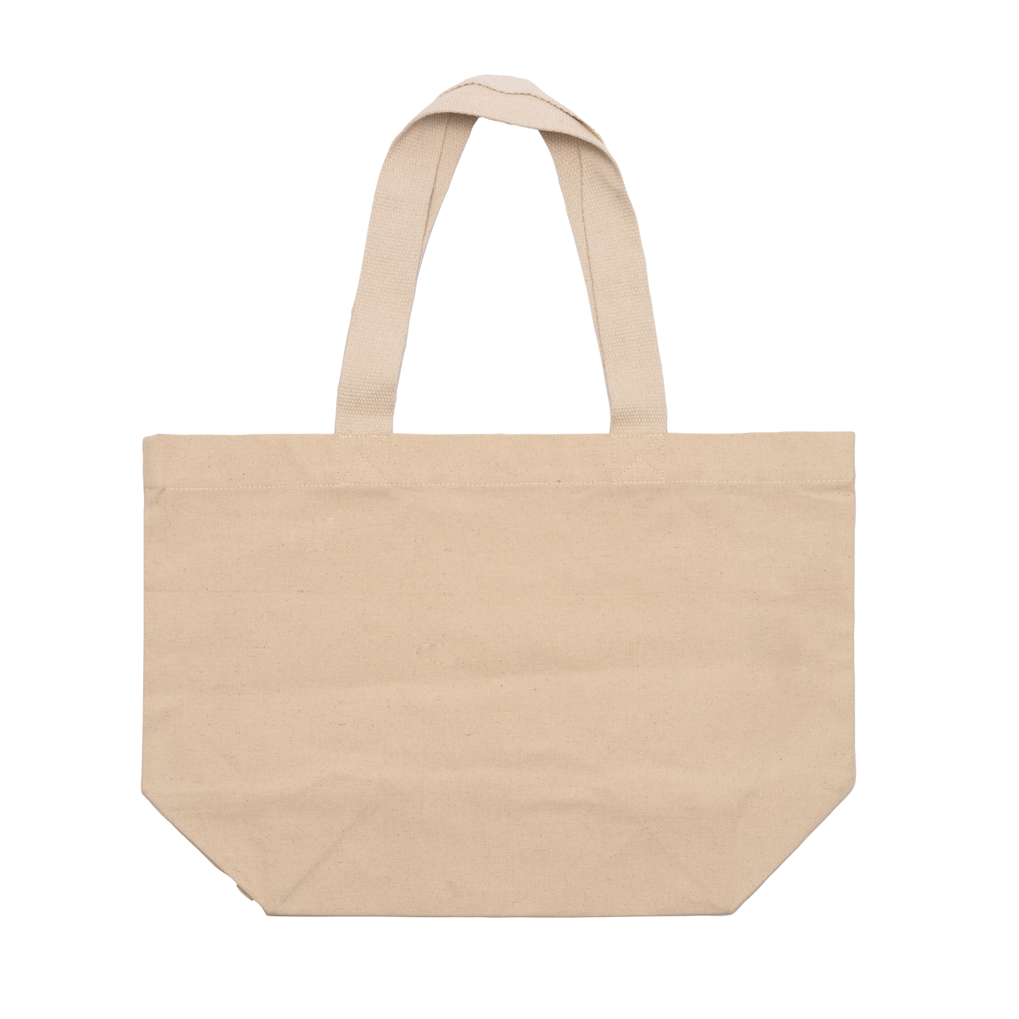 Bolsa gran formato de algodón canvas reciclado 330 g/m². Asas largas reforzadas de 70 cm.