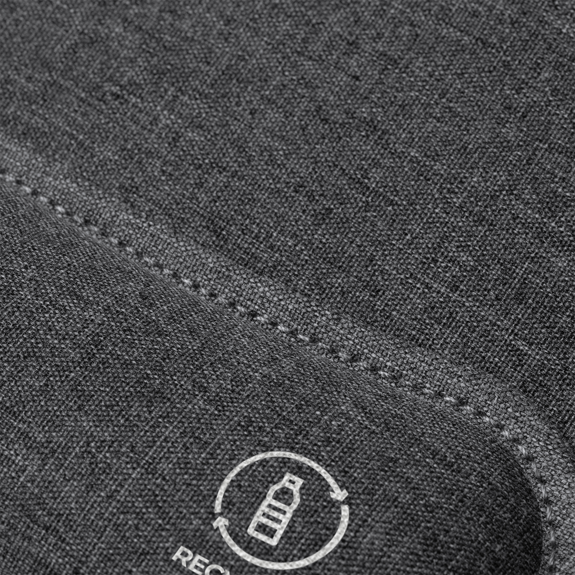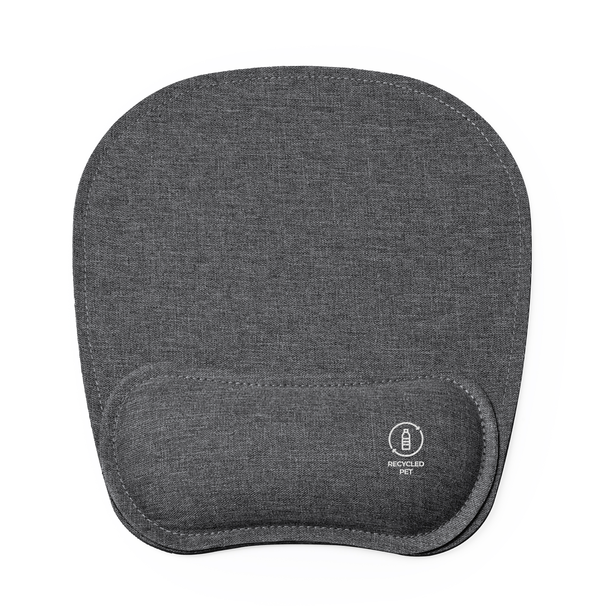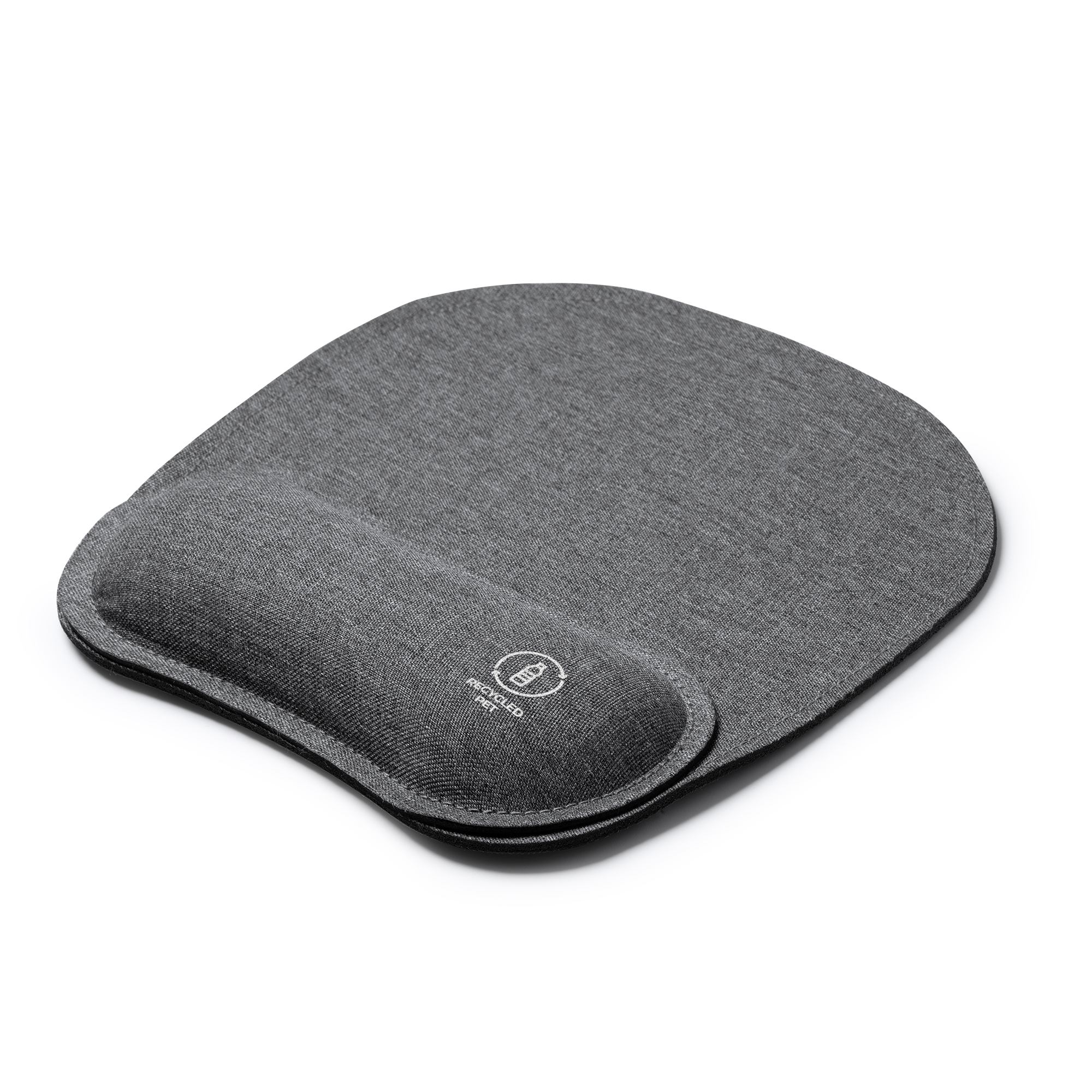 Alfombrilla elaborada con material RPET y acolchado ergonómico para mejor posición del usuario. Con base antideslizante de goma y estructura flexible.