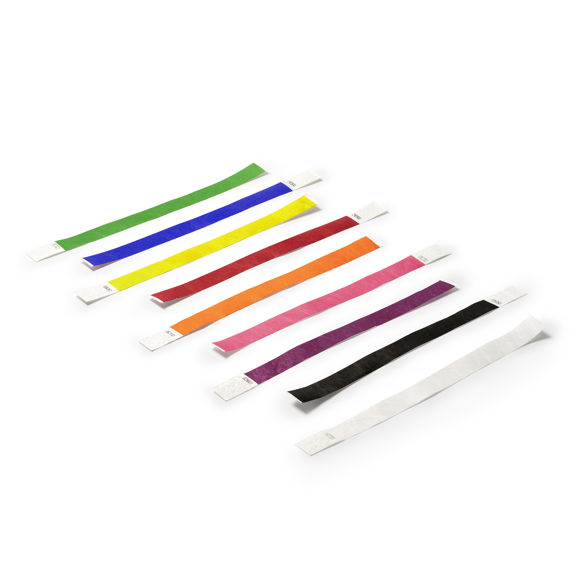 Pulsera para eventos de fibra sintética Tyvek con numeración individual. Presentación en plancha de 20 unidades.
