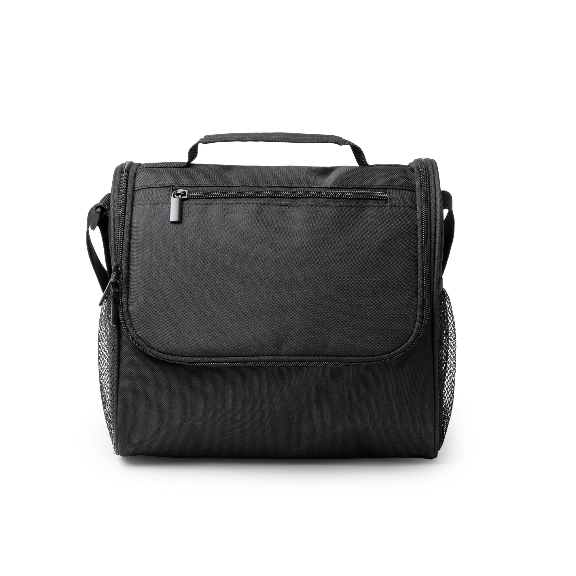 Nevera realizada en 600D RPET. Bolsillo principal con interior isotérmico. Práctico bolsillo frontal con cierre de cremallera y 2 bolsillos laterales. Cinta de transporte ajustable.