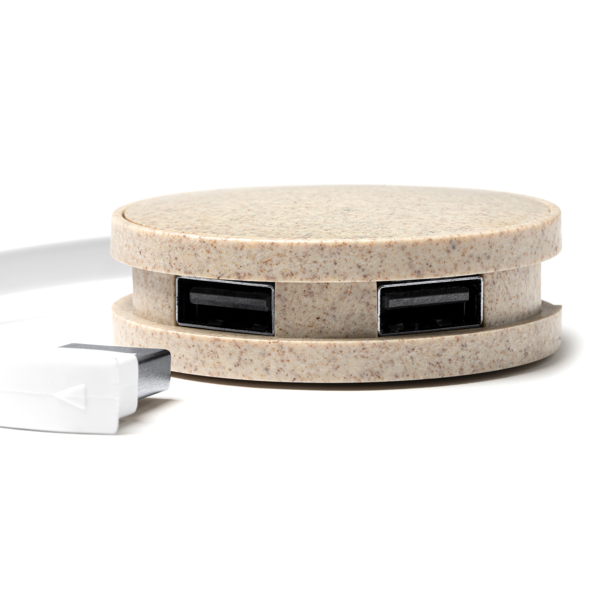 Puerto USB HUB realizado en fibra de trigo. Con 4 puertos USB. Con cable USB de conexión integrado.