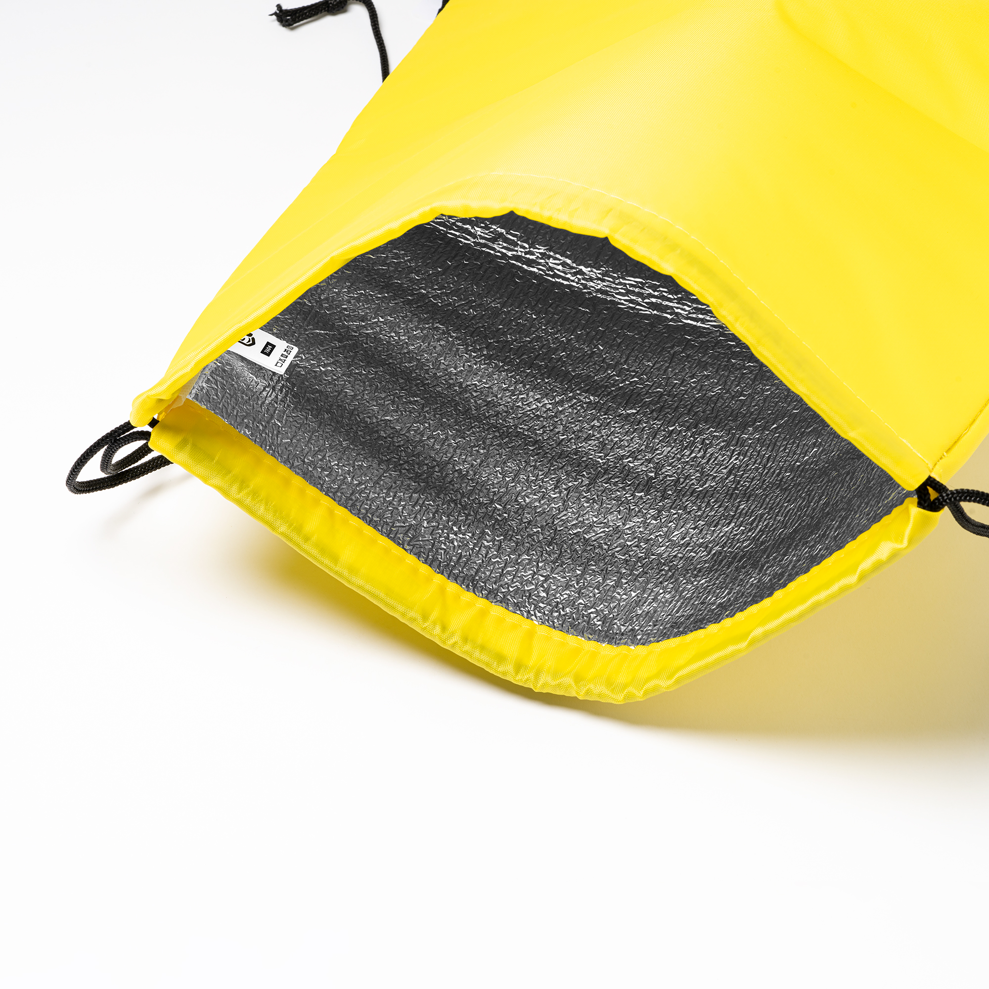 Mochila nevera de cuerdas con interior isotérmico de aluminio, con exterior elaborado en poliéster 210D e interior en aluminio isotérmico. Ideal para transportar alimentos y bebidas manteniéndolos a temperatura óptima.