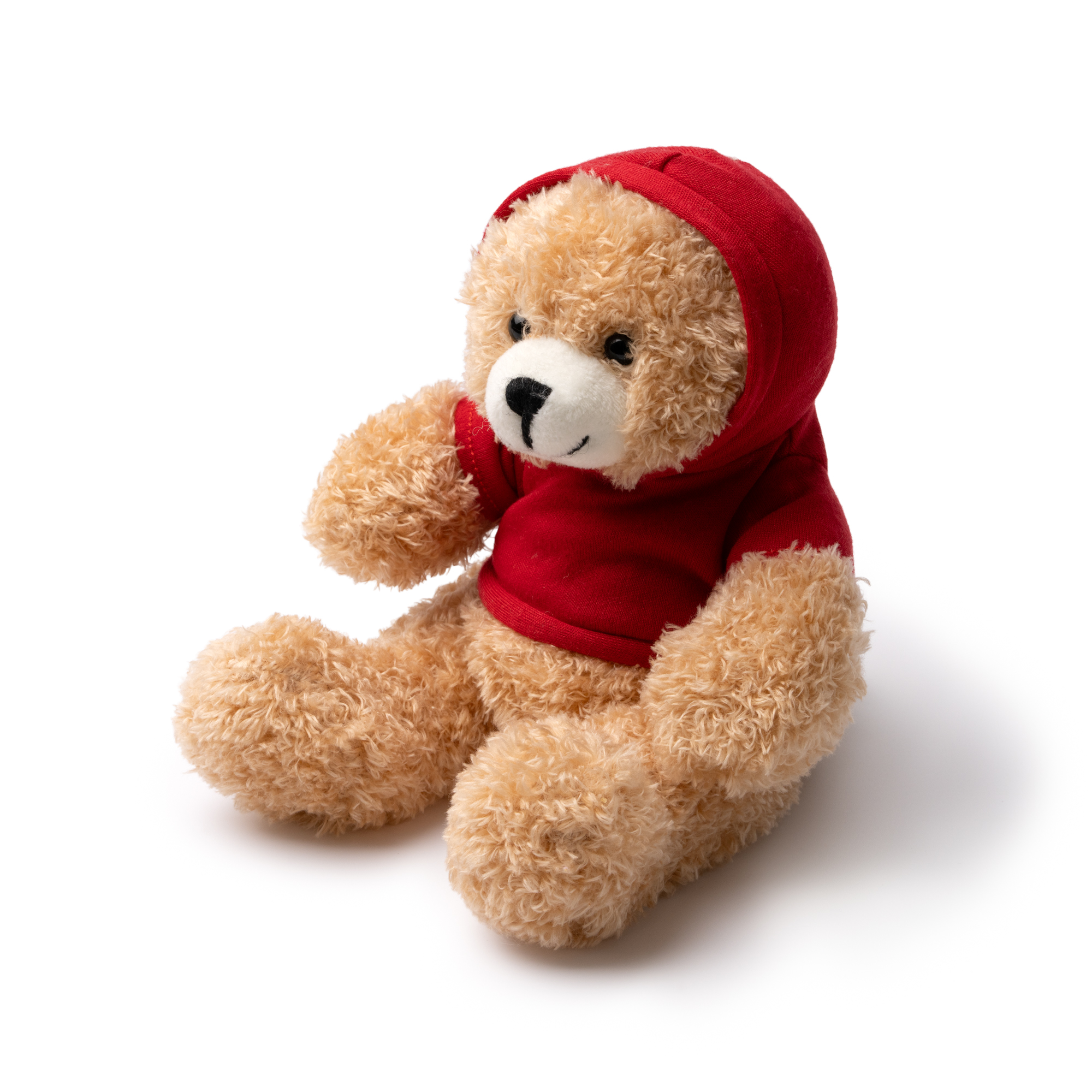 Osito de peluche con sudadera lisa realizada en suave poliéster de tacto suave. Ideal para regalar. Diseño en posición sentado.