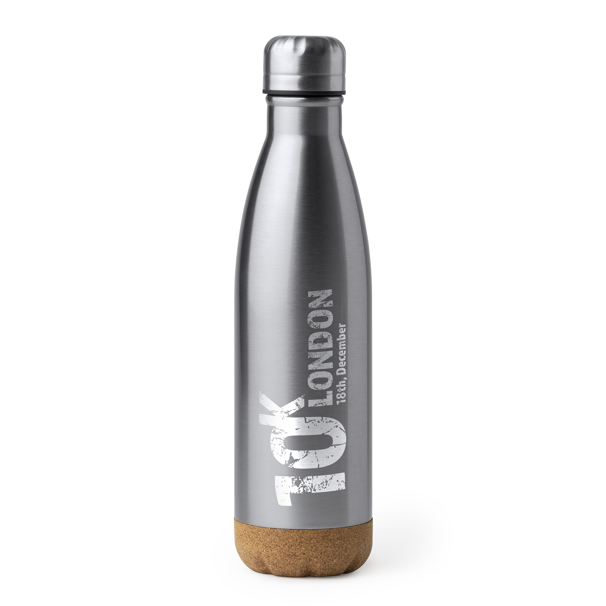 Bidón térmico de acero inoxidable 304 doble pared, ideal para mantener tus bebidas frías o calientes para disfrutarlas durante todo el día. La base realizada en corcho le da al bidón un aspecto natural y elegante. Tiene una capacidad de 520 ml.