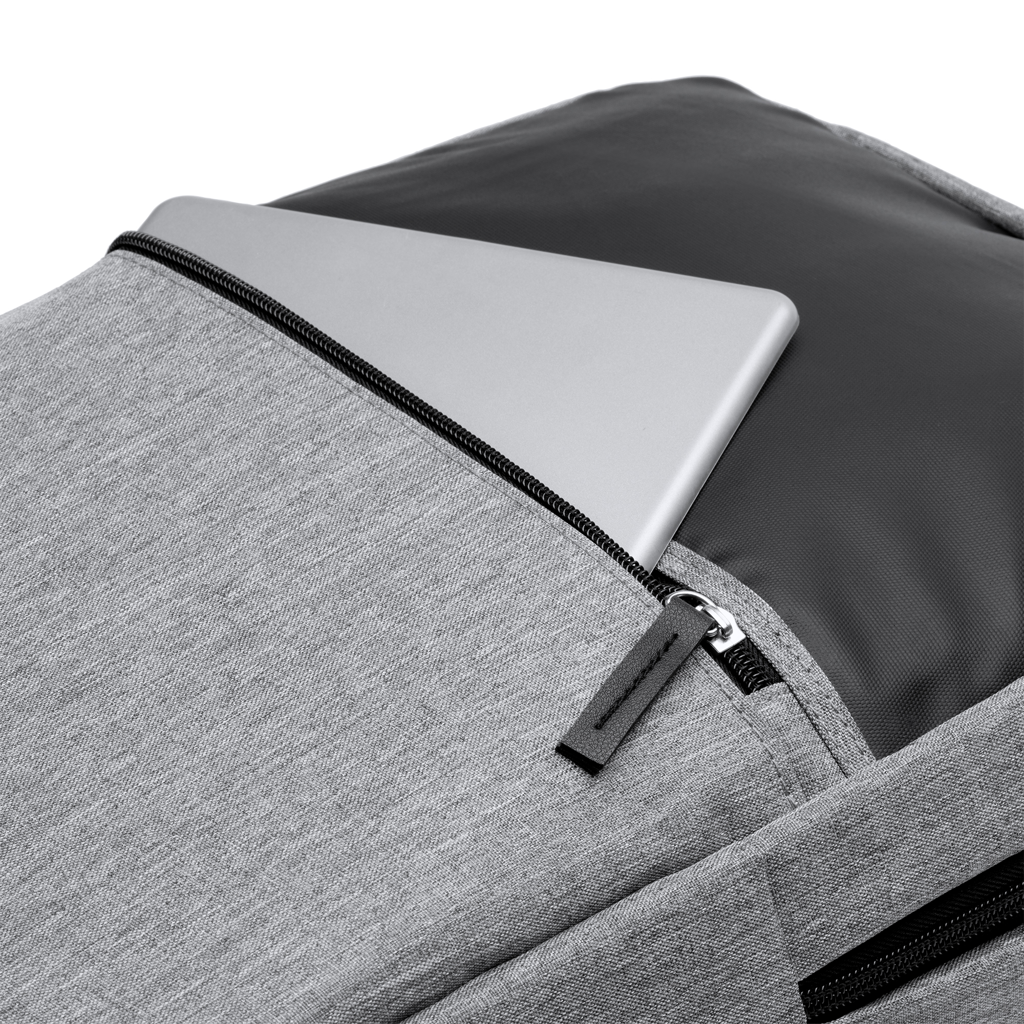 Mochila fabricada con poliéster reciclado RPET 600D, que combina diseño vigoré con detalles de PU Leather, con asas y espalda acolchadas. Cuenta con un compartimento principal y un bolsillo acolchado diseñado para ordenador portátil de 15″. Además, cuenta con un bolsillo exterior acolchado para guardar tus objetos de menor tamaño. Incluye una práctica cinta para trolley, que te permitirá sujetarla a tu equipaje de mano mientras viajas.