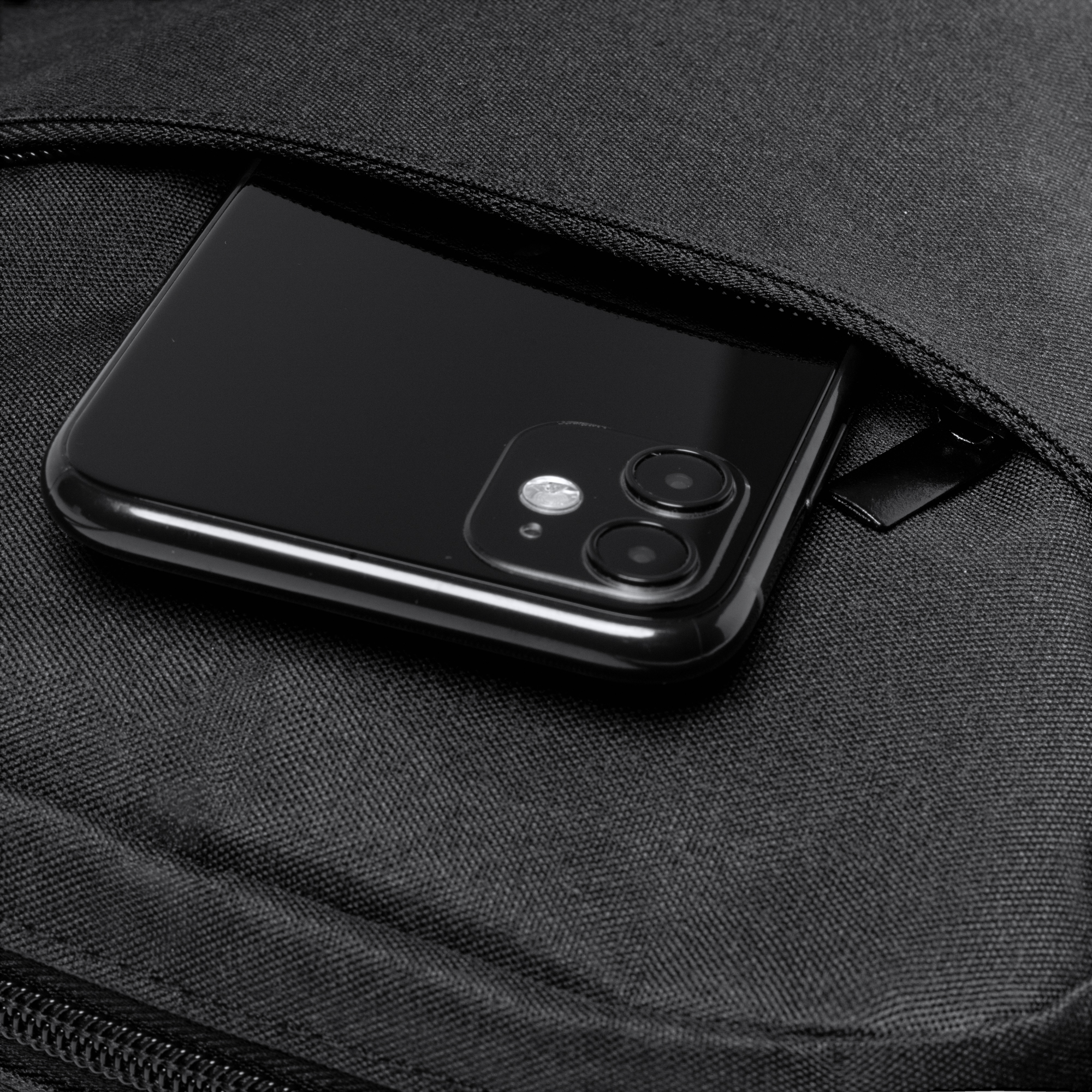 Bandolera realizada en políester reciclado RPET. Cuenta con un compartimento principal con 2 bolsillos interiores y bolsillo frontal, además de asa de trasnsporte ajustable.