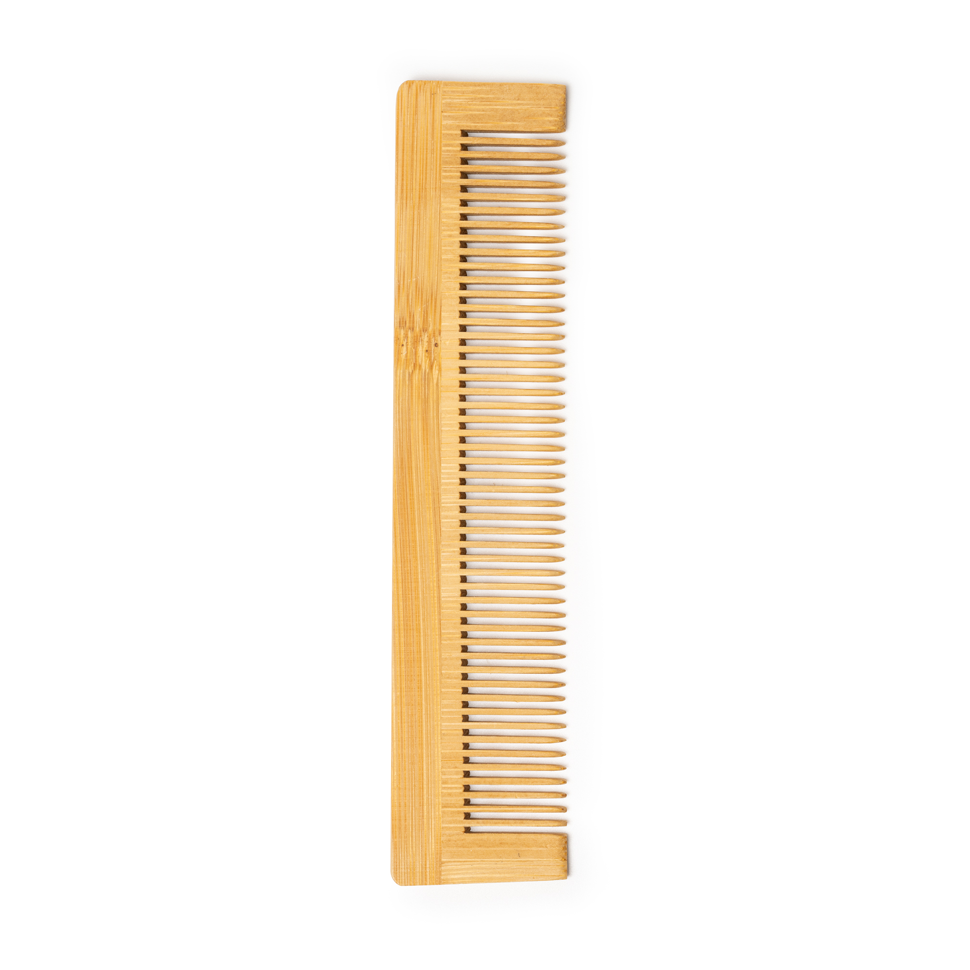 Peine de bambú de uso diario de tamaño práctico ideal para llevar en bolso o neceser y poder transportarlo fácilmente.