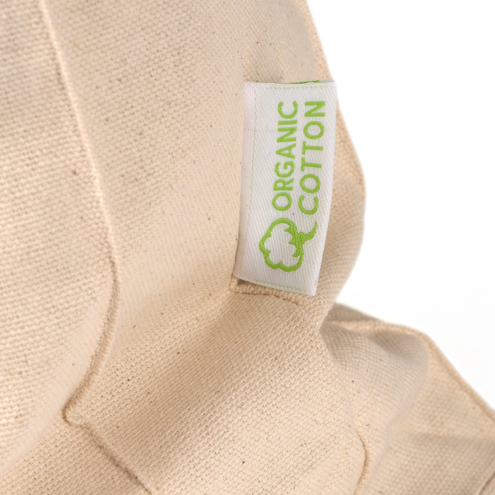 Bolsa 100% algodón orgánico 220 g/m² de con fuelle en la base y laterales para hacerla en una opción adaptable y versátil para transportar tus enseres. Acabado natural con asas de 70 cm lo que la hace una opción práctica, cómoda y sostenible.