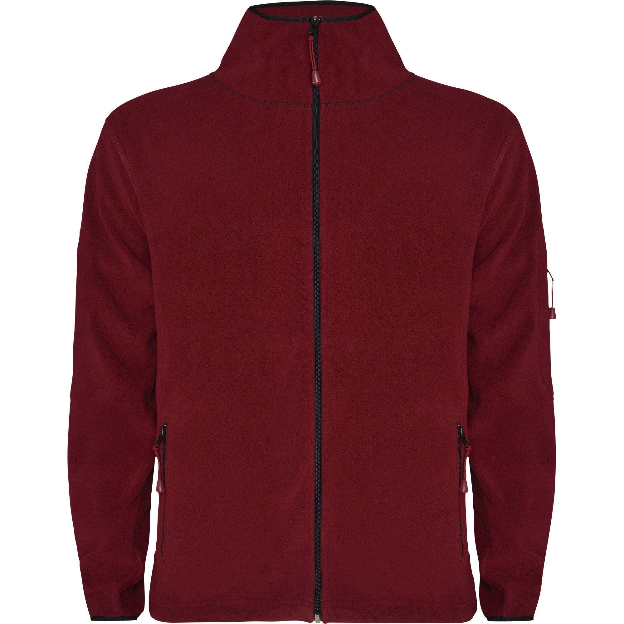 Chaqueta polar con cremallera frontal. Cuello alto y puños con vivo elástico. Bolsillo en manga izquierda con cremallera.