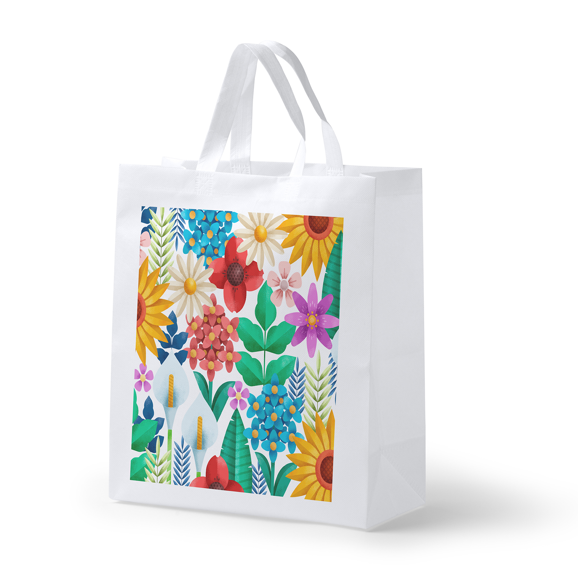 Bolsa especial para sublimación de non-woven 70 g/m² con fondo y asas cortas reforzadas.