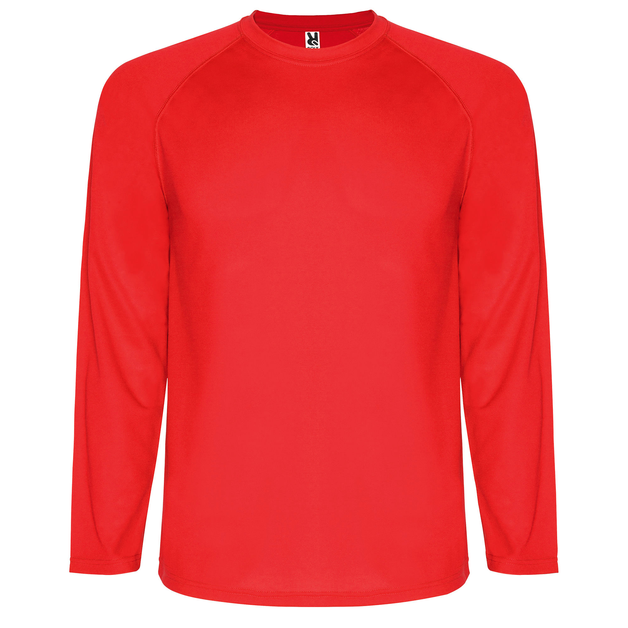 Camiseta técnica manga ranglán transpirable. Roly Control Dry. Cuello redondo y cubrecosturas del mismo tejido al tono. Certificado UV.