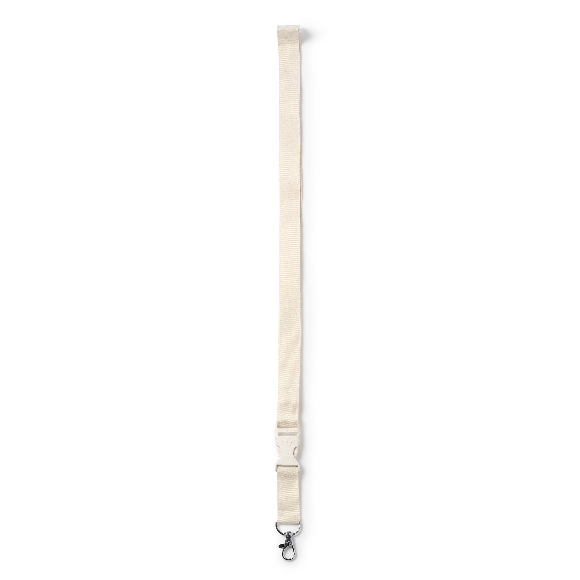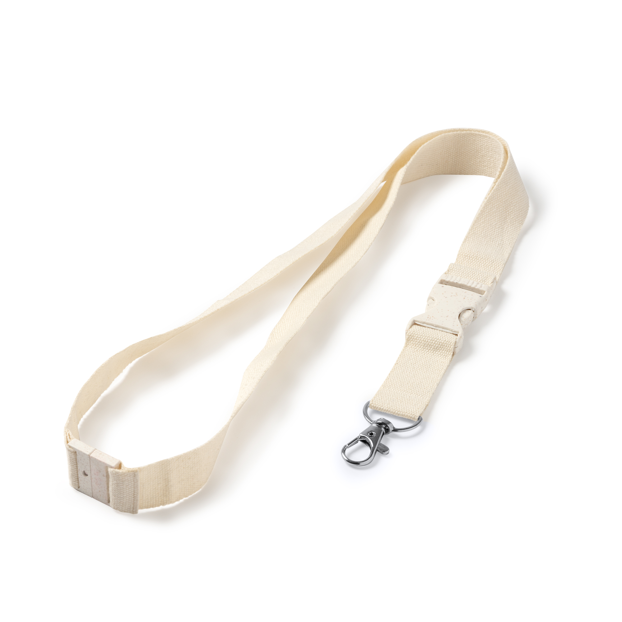 Lanyard de algodón con mosquetón, hebilla y cierre de seguridad de fibra de trigo.