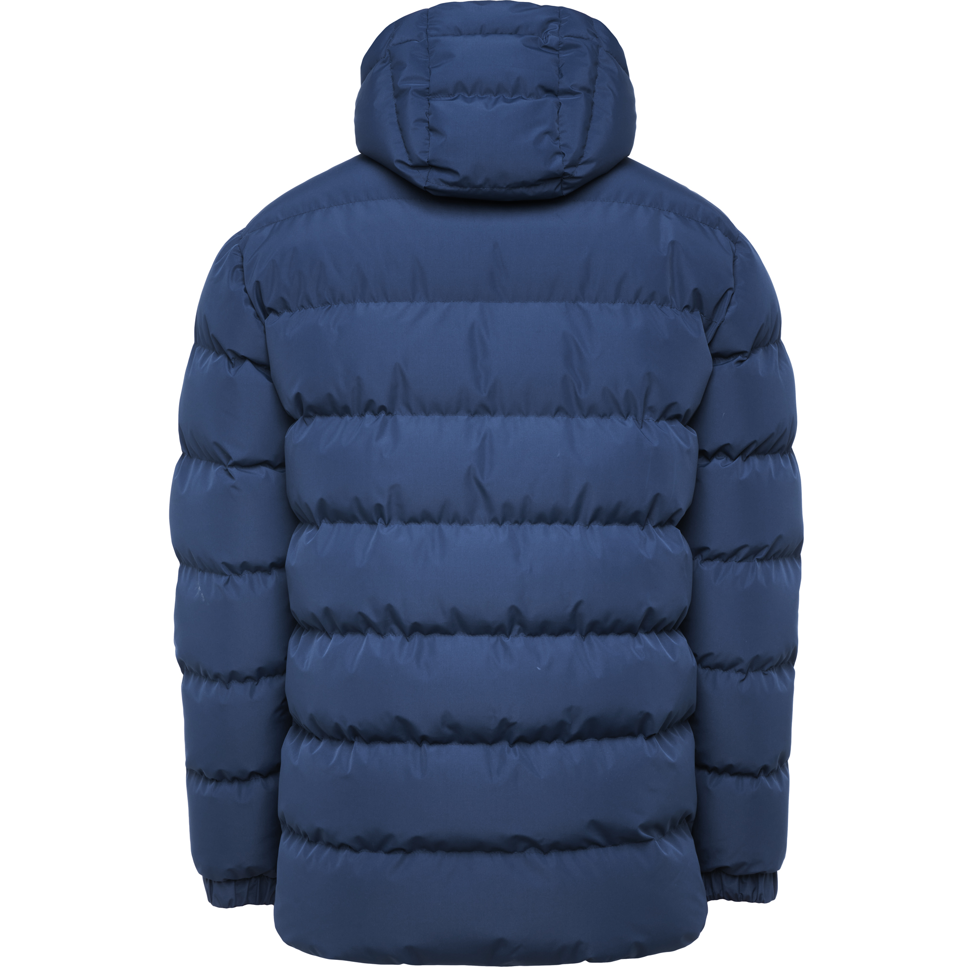 Parka acolchada repelente al agua con capucha fija y visera. Cremallera frontal al tono y tirador de doble dirección. Protector de barbilla del mismo tejido. Puños elásticos. Bolsillos laterales con cremalleras al tono. Bolsillo interior en pecho izquierdo. Acceso interior para reprocesos.