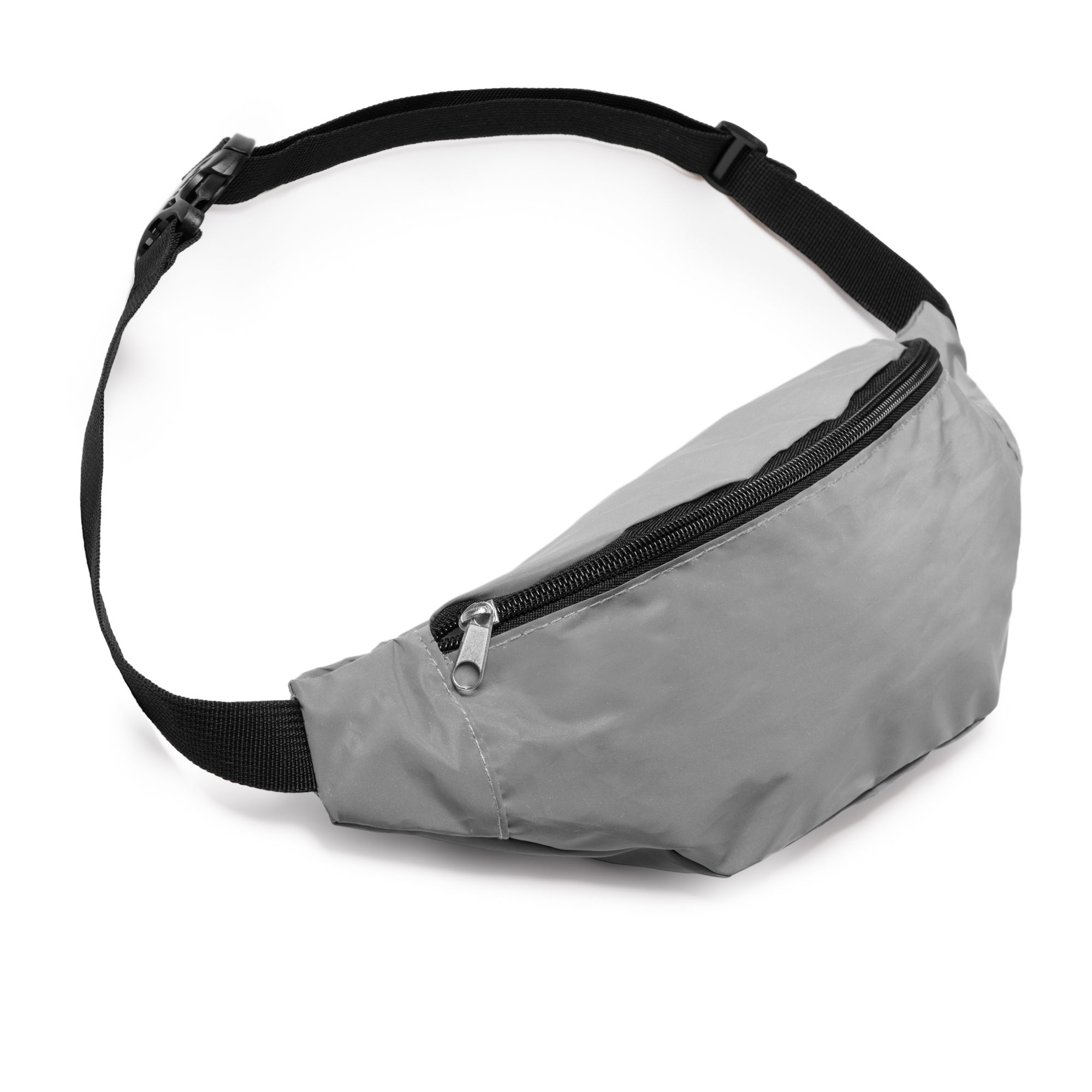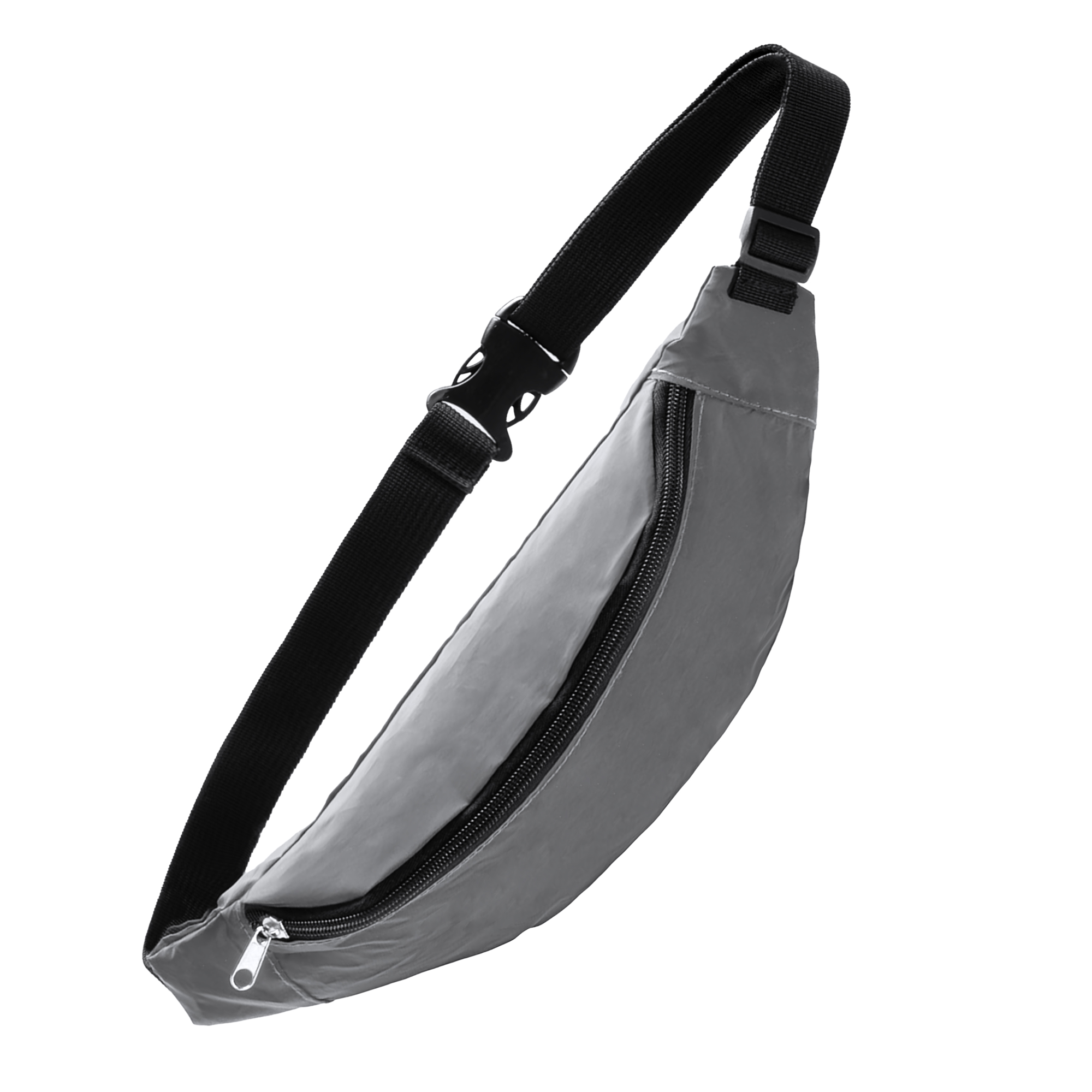 Riñonera reflectante elaborada en poliéster, con un amplio bolsillo frontal. Cuenta con un sistema de hebilla para hacer más cómodo su uso, además de una cinta ajustable y cierre de cremallera del compartimento principal.