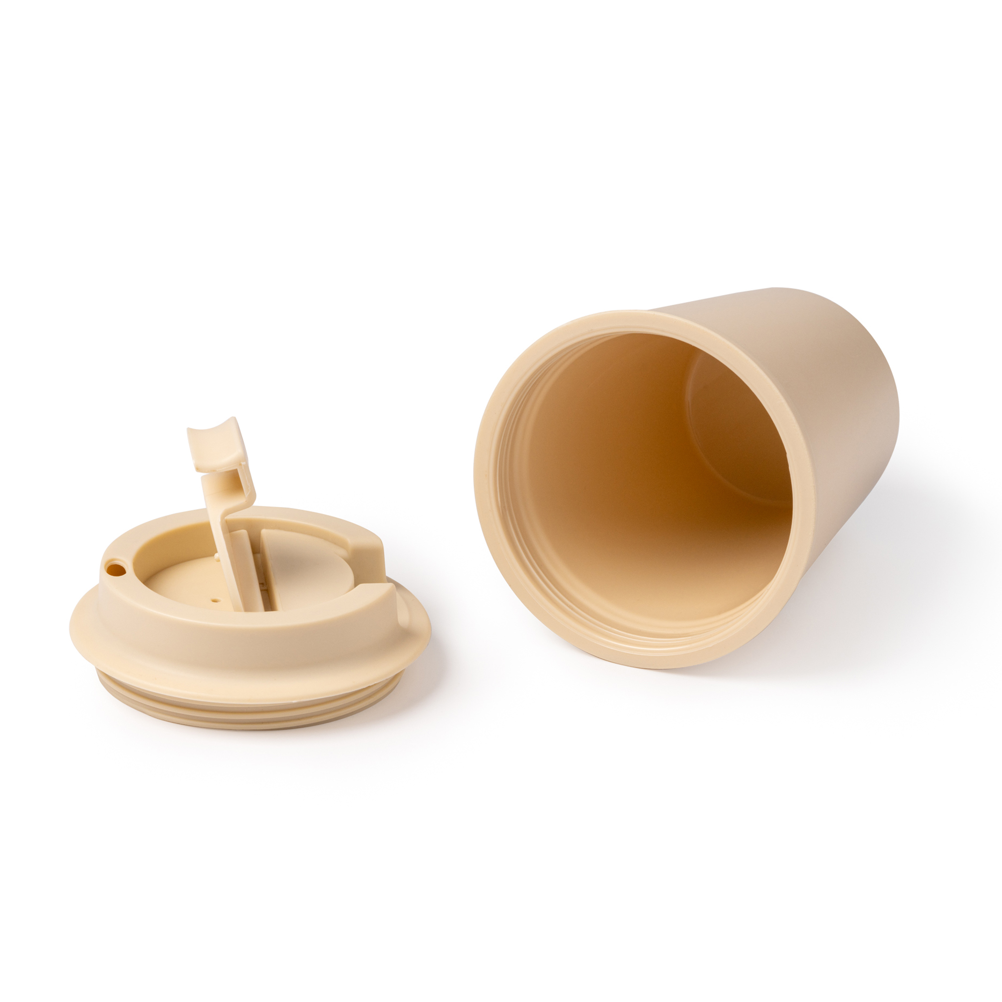 Vaso con cuerpo y tapa de PP, cuenta con una tapa a rosca y boquilla para facilitar el consumo. Con una capacidad de 300 ml, es perfecto para bebidas calientes o frías. Su diseño compacto y funcional lo hace ideal para llevar a cualquier lugar, ofreciendo comodidad y practicidad.