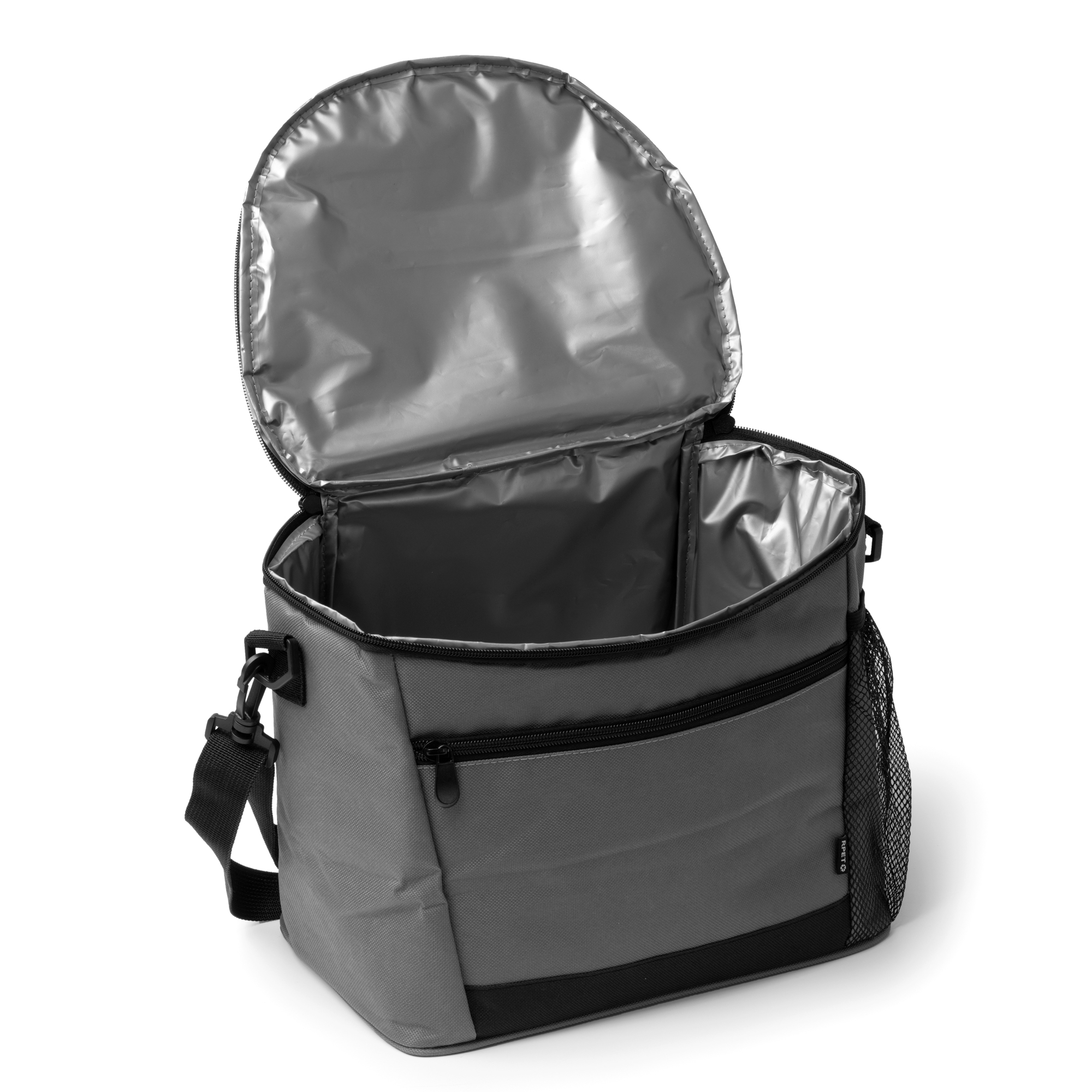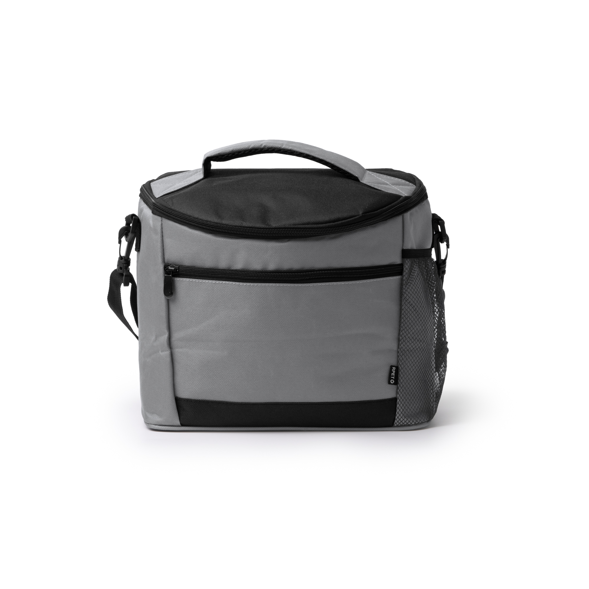 Nevera de gran formato realizada en 600D RPET, lo que la hace una opción sostenible y funciional. Cuenta con un bolsillo frontal preparado para el almacenaje de utensilios o snaks. Además de incluir un bolsillo lateral de rejilla para el transporte de botellas y bebidas. Interior Isotérmico para mantener los alimentos en una temperatura óptima y cinta de transporte ajustable para mayor comodidad.