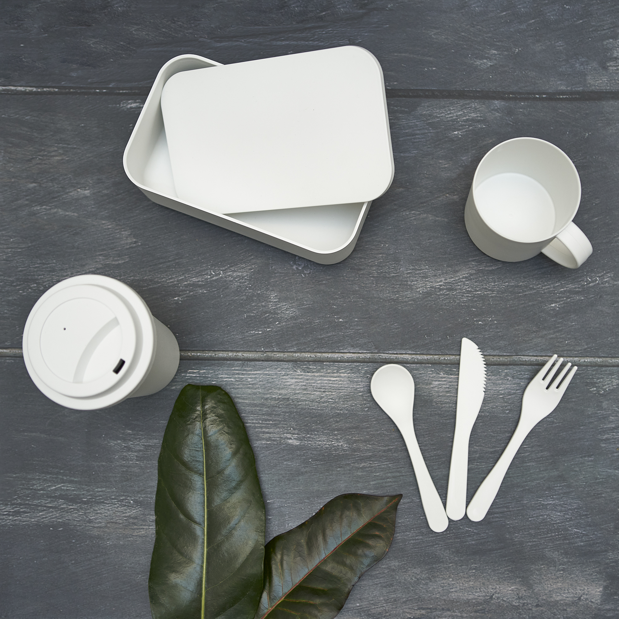 Taza reutilizable de PLA con capacidad de 350 ml.