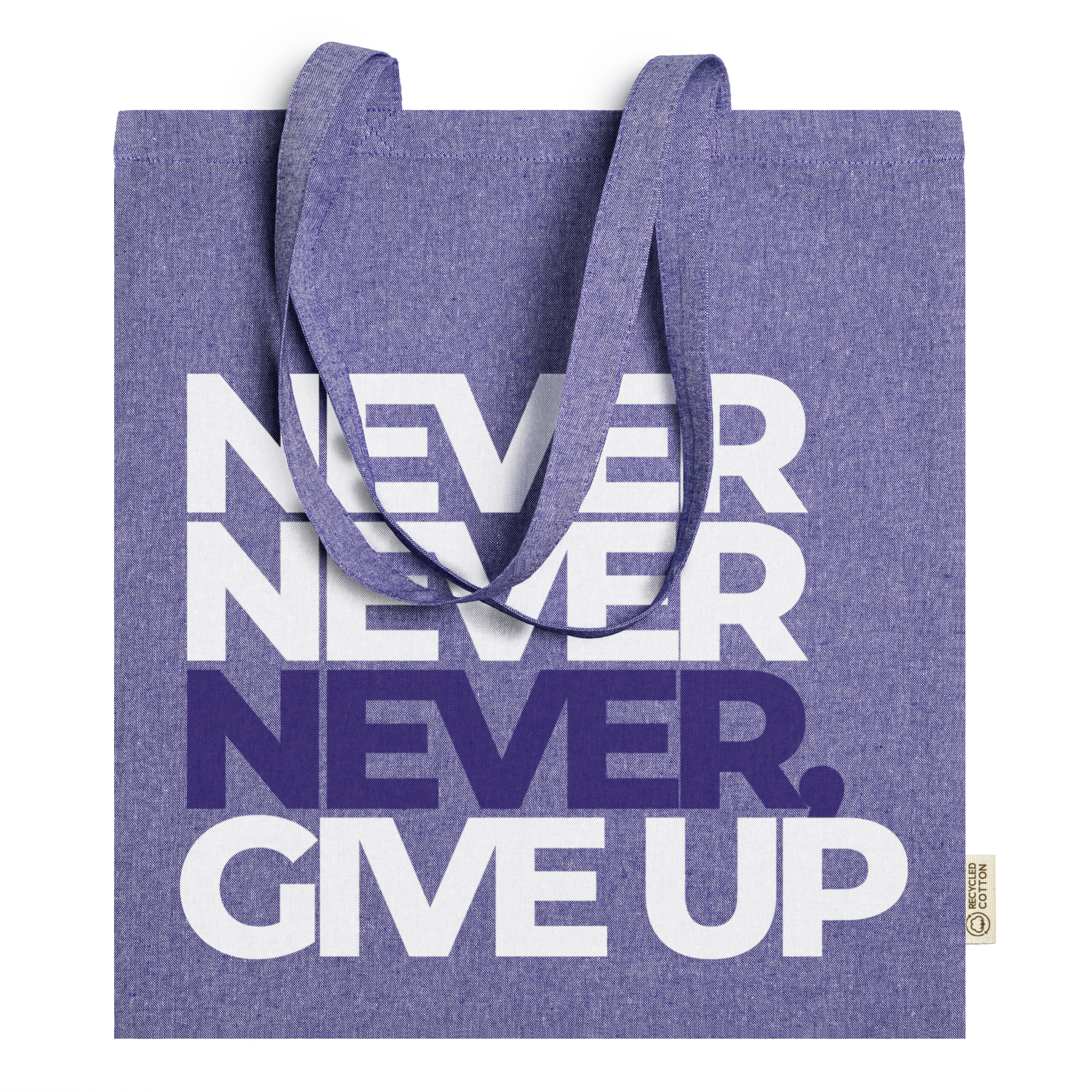 Bolsa de algodón reciclado de 120 g/m² en acabado jaspeado con asas largas de 70 cm.