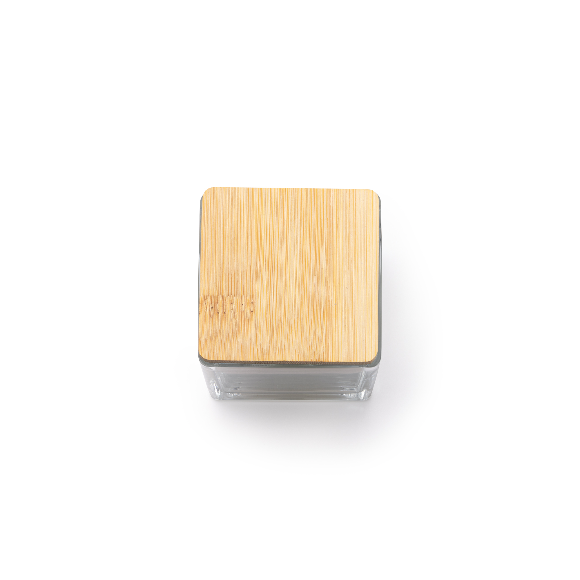 Vela aromática en recipiente de cristal cuadrado con tapa de bambú es una opción elegante y ecosostenible, para crear un ambiente cálido y acogedor en tu hogar. Con aroma a vainilla. La luz de la llama se refleja de manera suave y sutil. La tapa de bambú ayuda a mantener la fragancia de la vela cuando no está en uso.