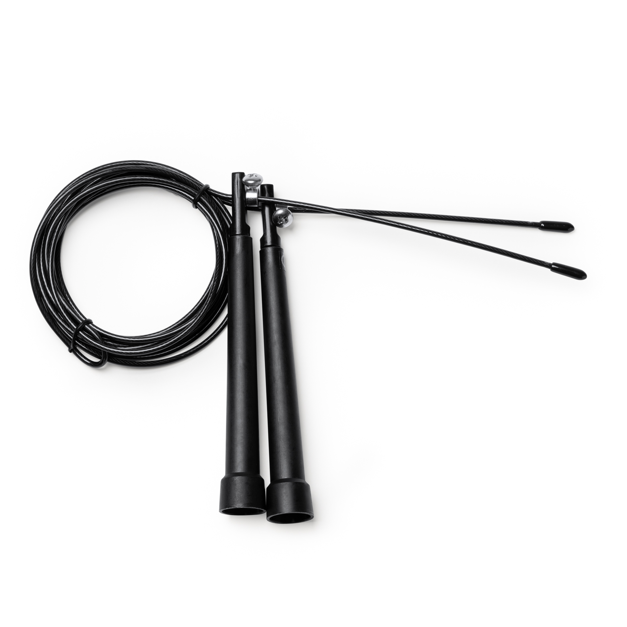 Cuerda de saltar técnica regulable de 300 cm. Se puede ajustar la longitud de la comba para aumentar o disminuir la velocidad. Incluye una funda para transportarla o guardarla fácilmente con cordones.