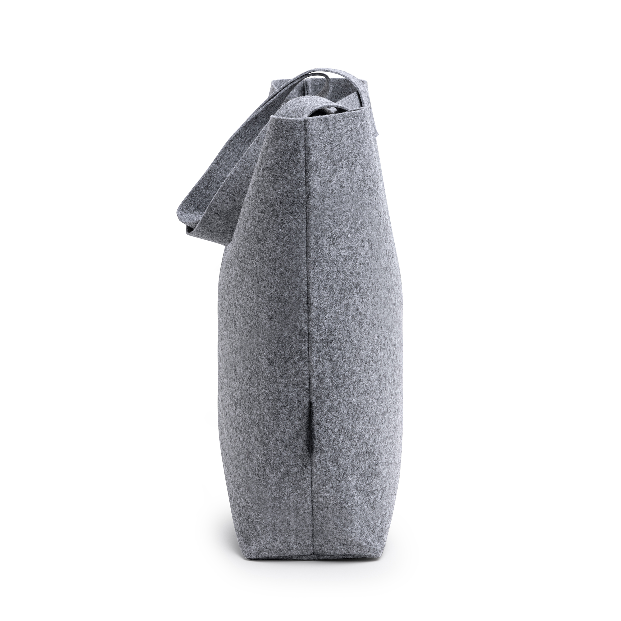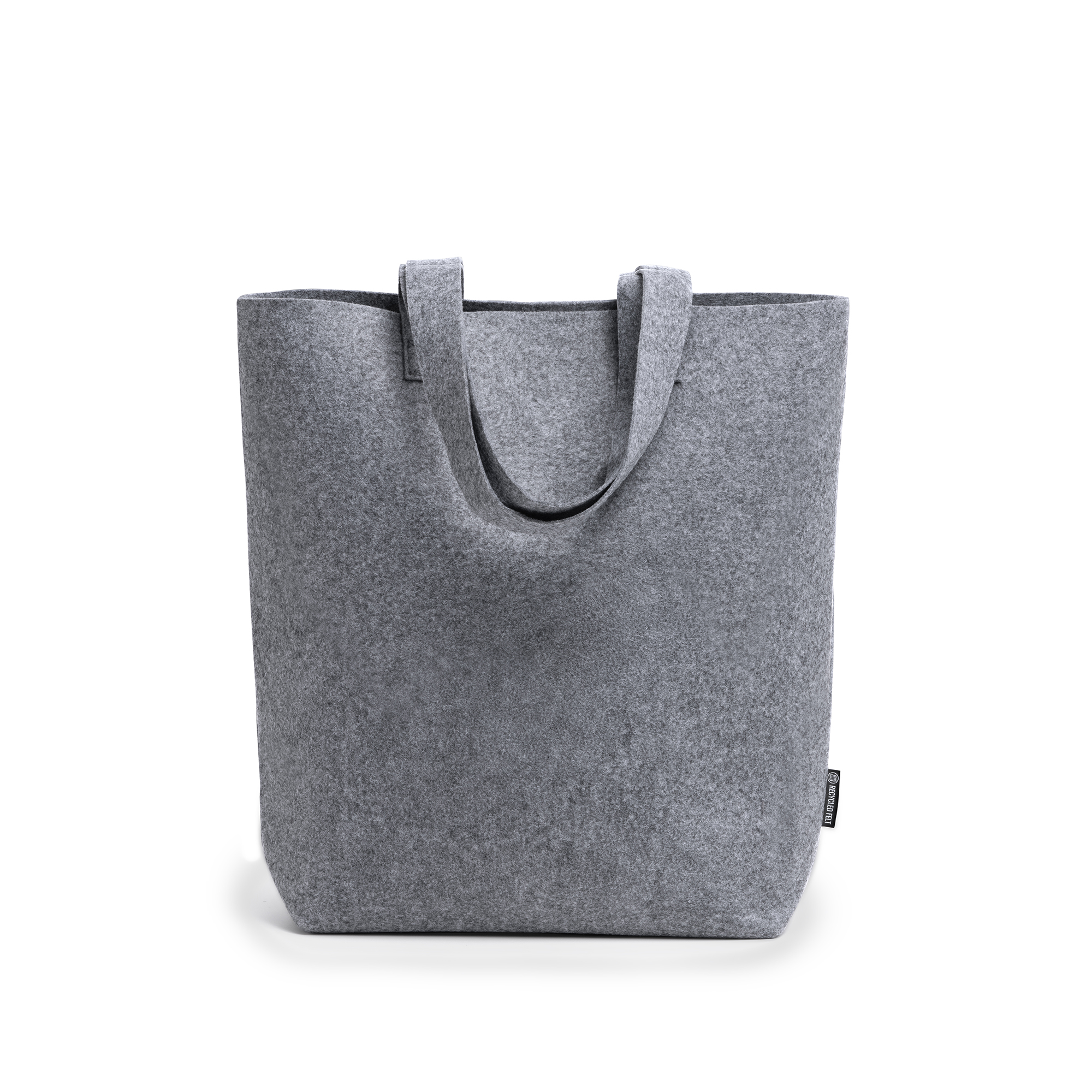 Bolsa realizada en fieltro reciclado con diseño vigoré y asas reforzadas de 70 cm. Una opción práctica para el transporte de tus objetos con la máxima versatilidad y comodidad y compromiso con el medio ambiente.