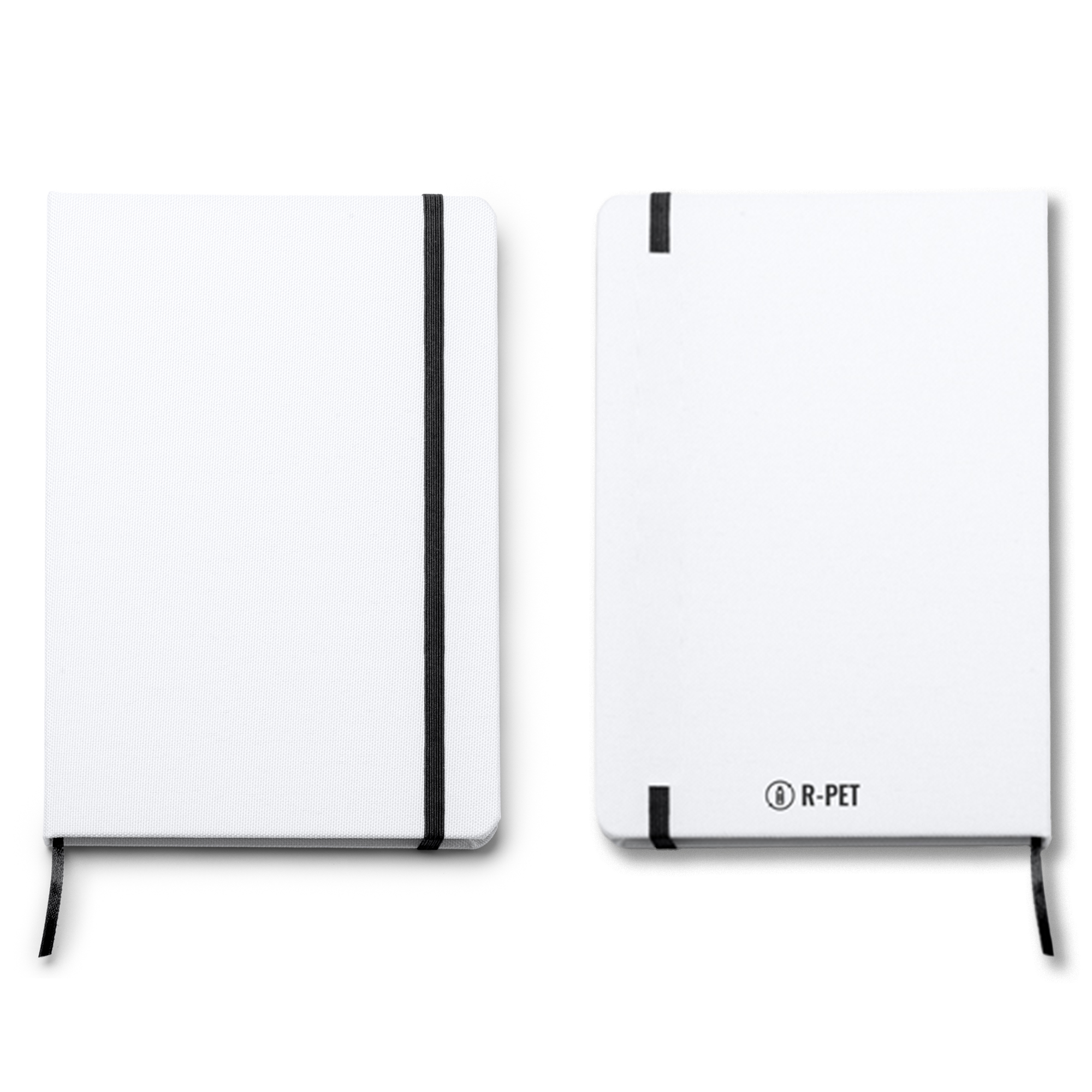 Bloc de notas tamaño A5 ideal para sublimación de tapa rígida. Incluye marcador de páginas y banda elástica de cierre a juego. Contiene con 100 hojas lisas.