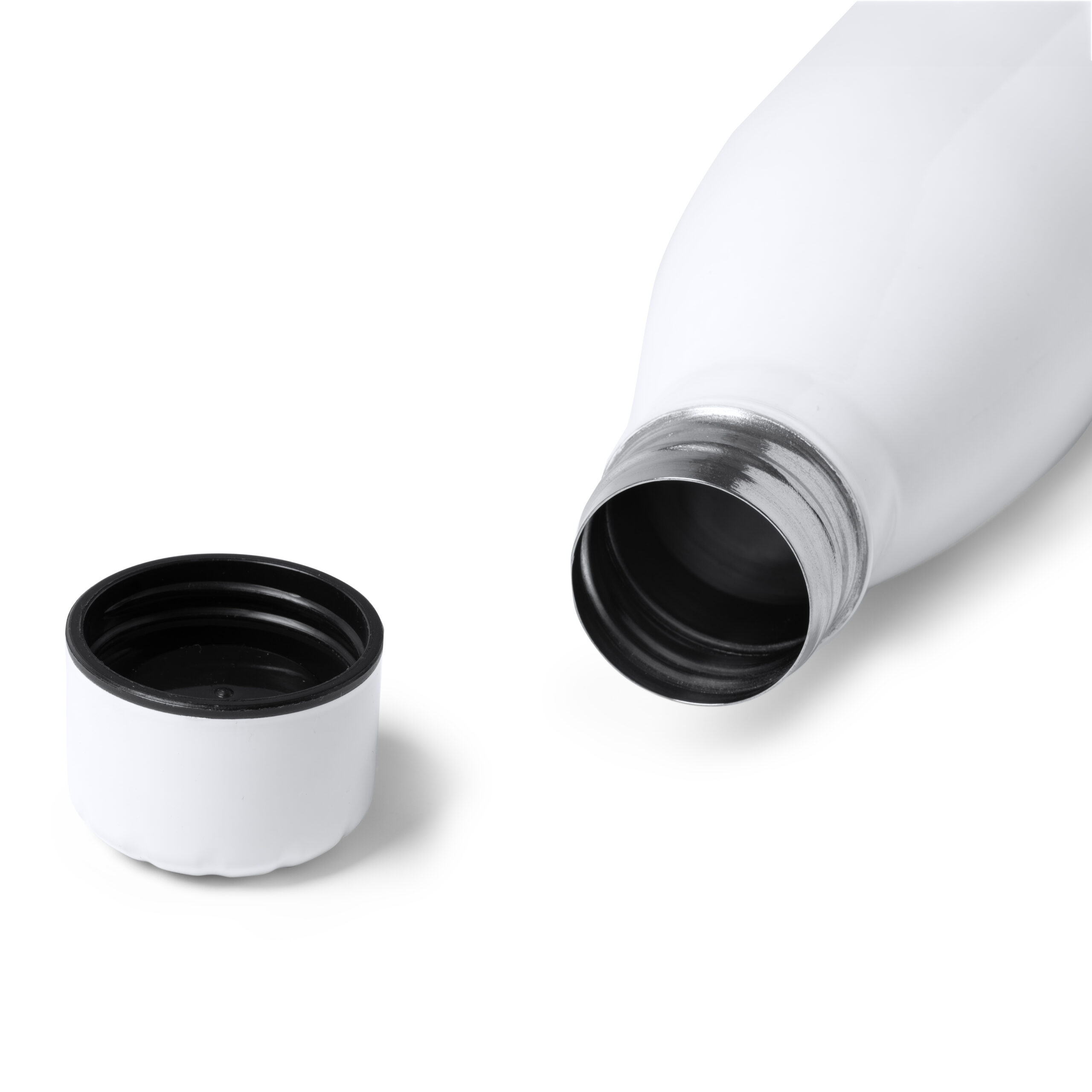 Bidón de acero inoxidable 304 especial para sublimación. Capacidad 700 ml. Con tapón a rosca antigoteo, con anillo de silicona en él, para reforzar su cierre. Crea un bidón personalizado único.