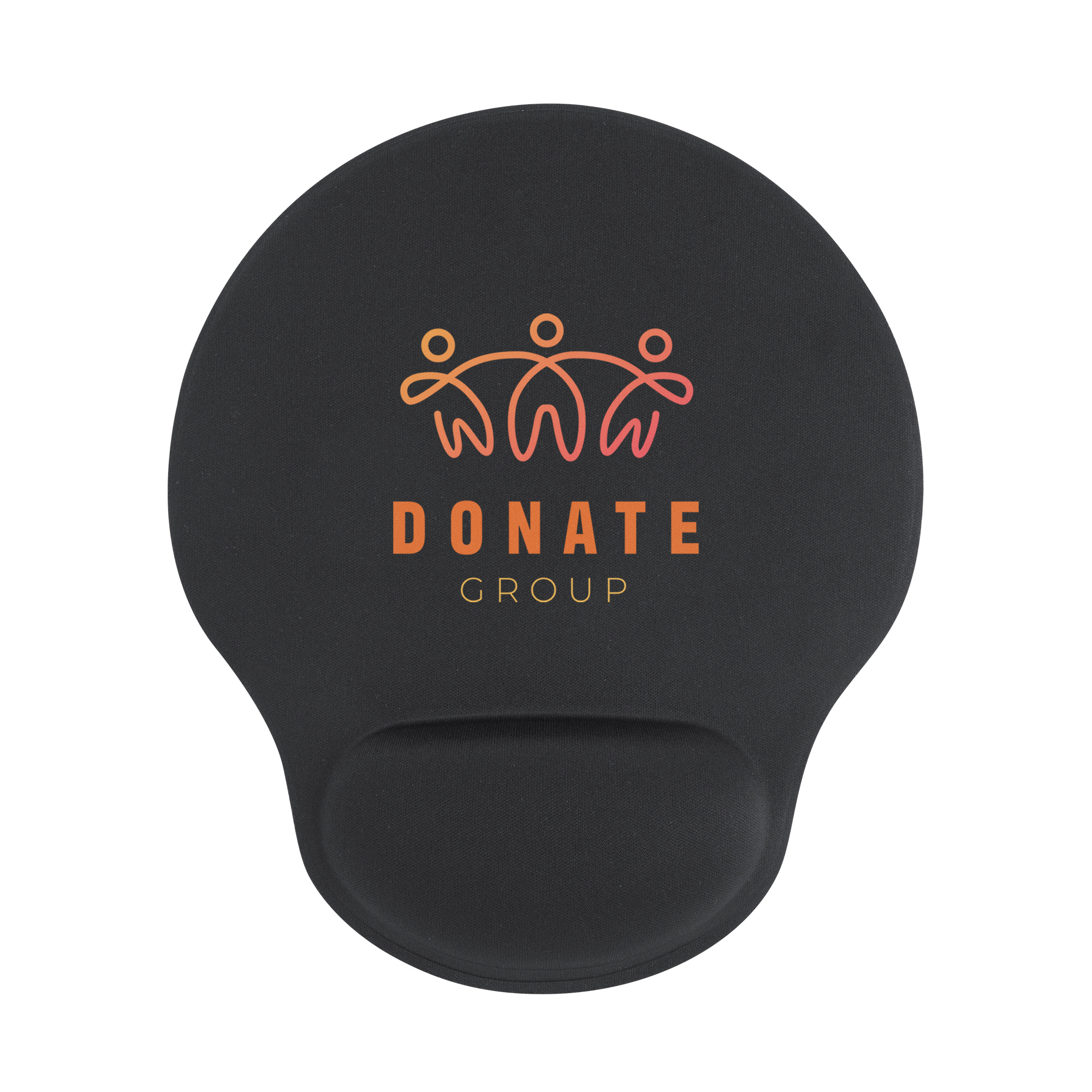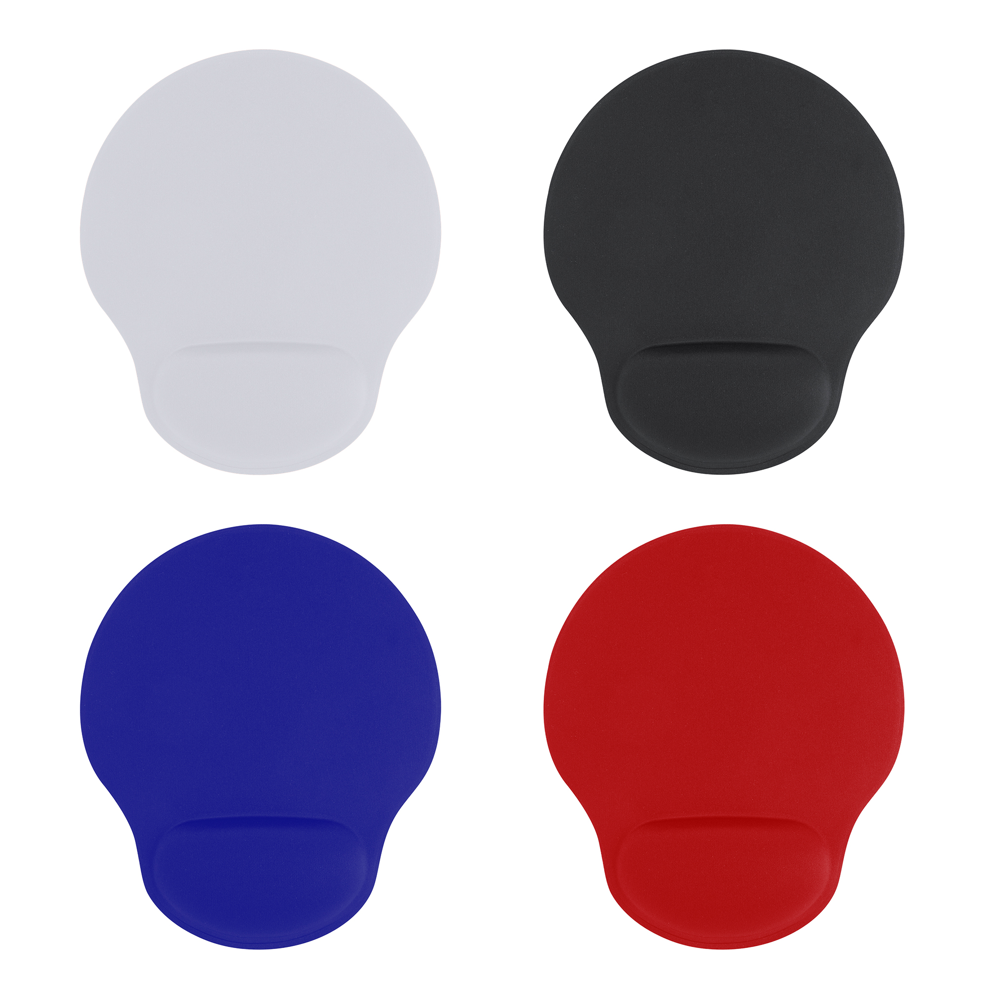 Alfombrilla para ratón realizada en poliéster suave con reposamuñecas acolchado. Base antideslizante de goma.