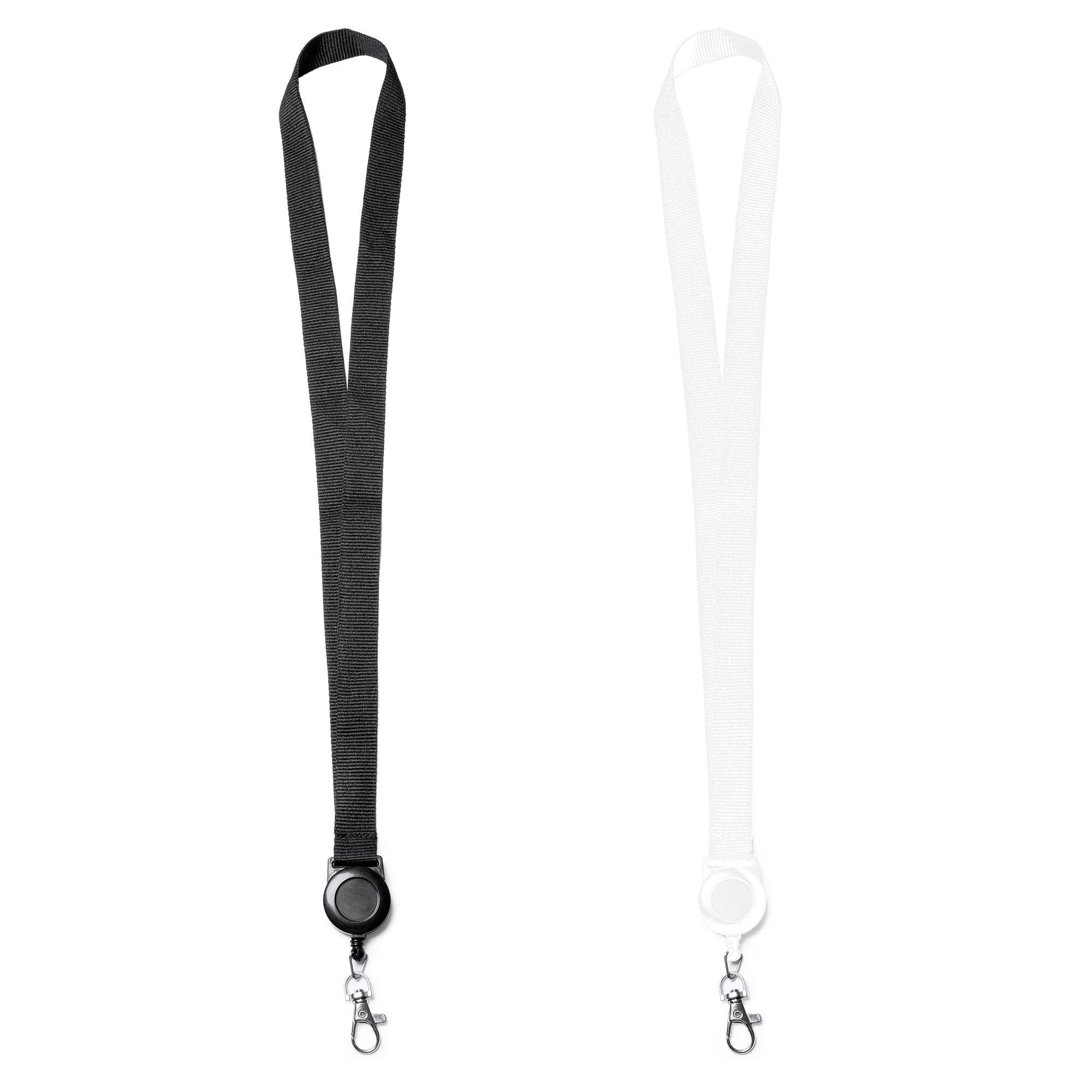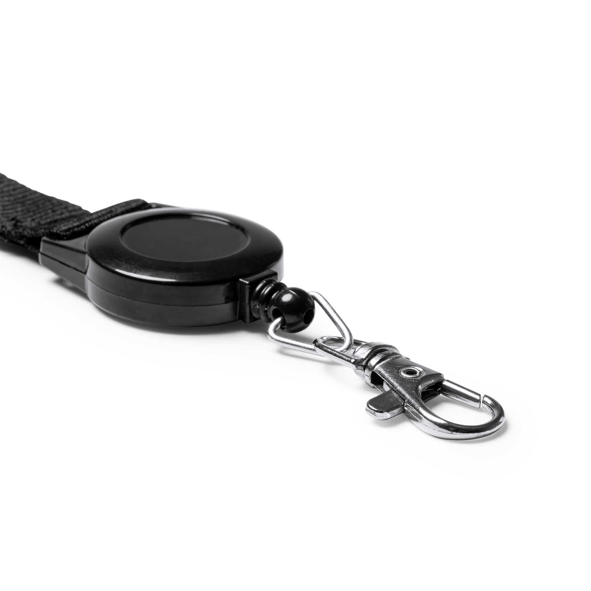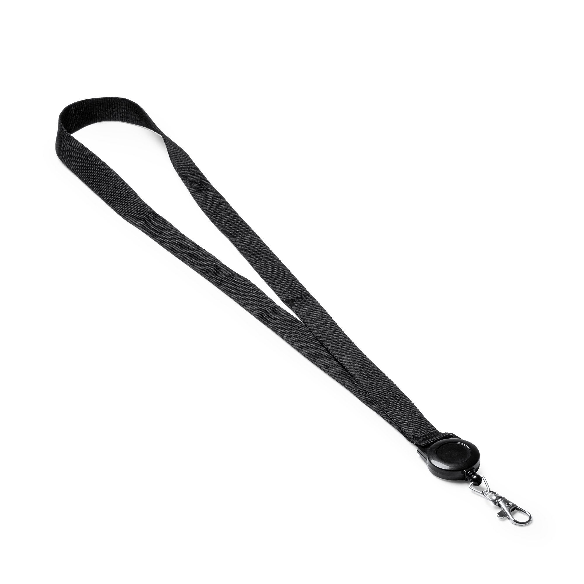 Lanyard con accesorio retráctil extensible. Incluye mosquetón.