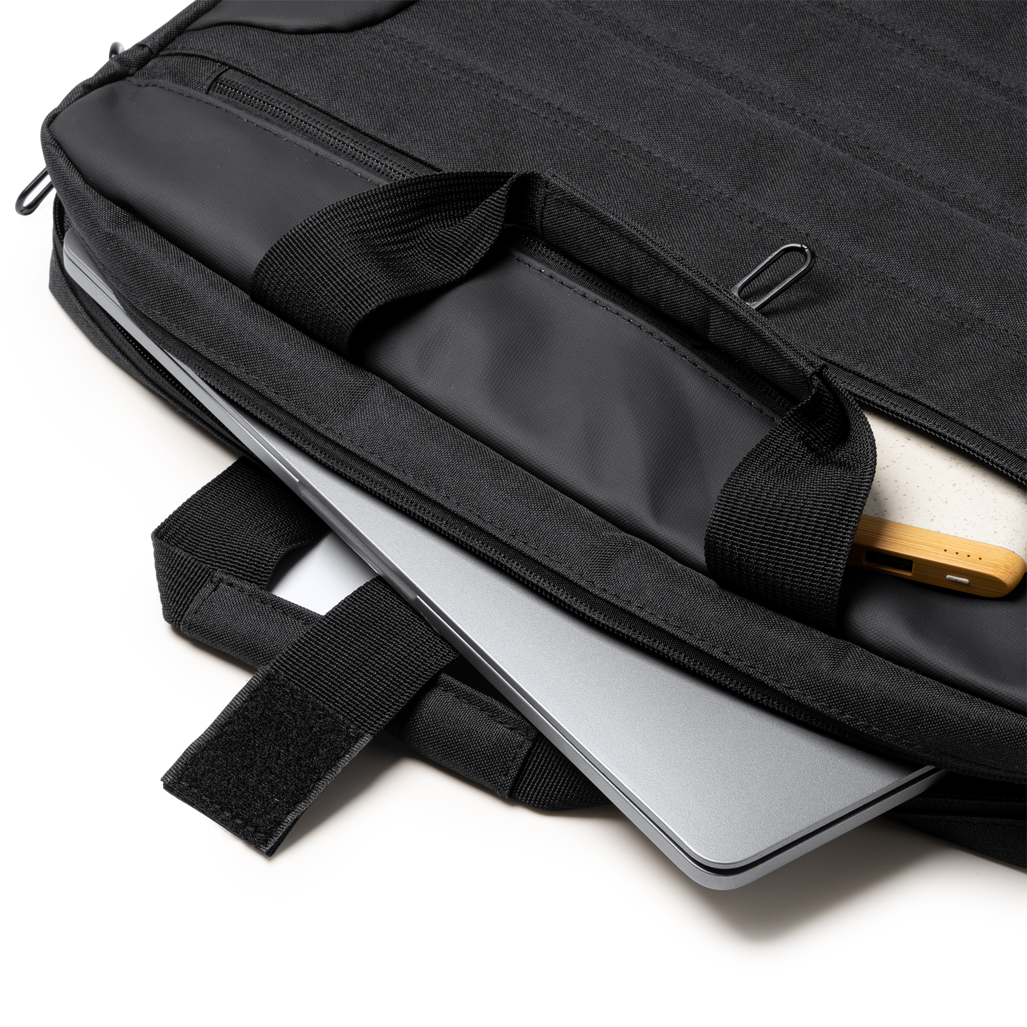 Cuenta con dos compartimentos para llevar ordenador y documentos por separado, con protección adicional para la seguridad de tu dispositivo. Cuenta con dos asas de mano y cinta bandolera para ofrecer diferentes y cómodas opciones de transporte.