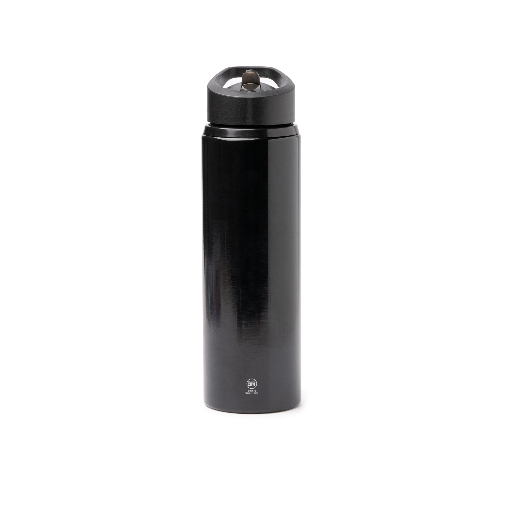 Bidón de acero inoxidable 304 reciclado. Capacidad 700 ml. Dosificador con pajita. Asa de transporte. Presentación en caja diseño eco.