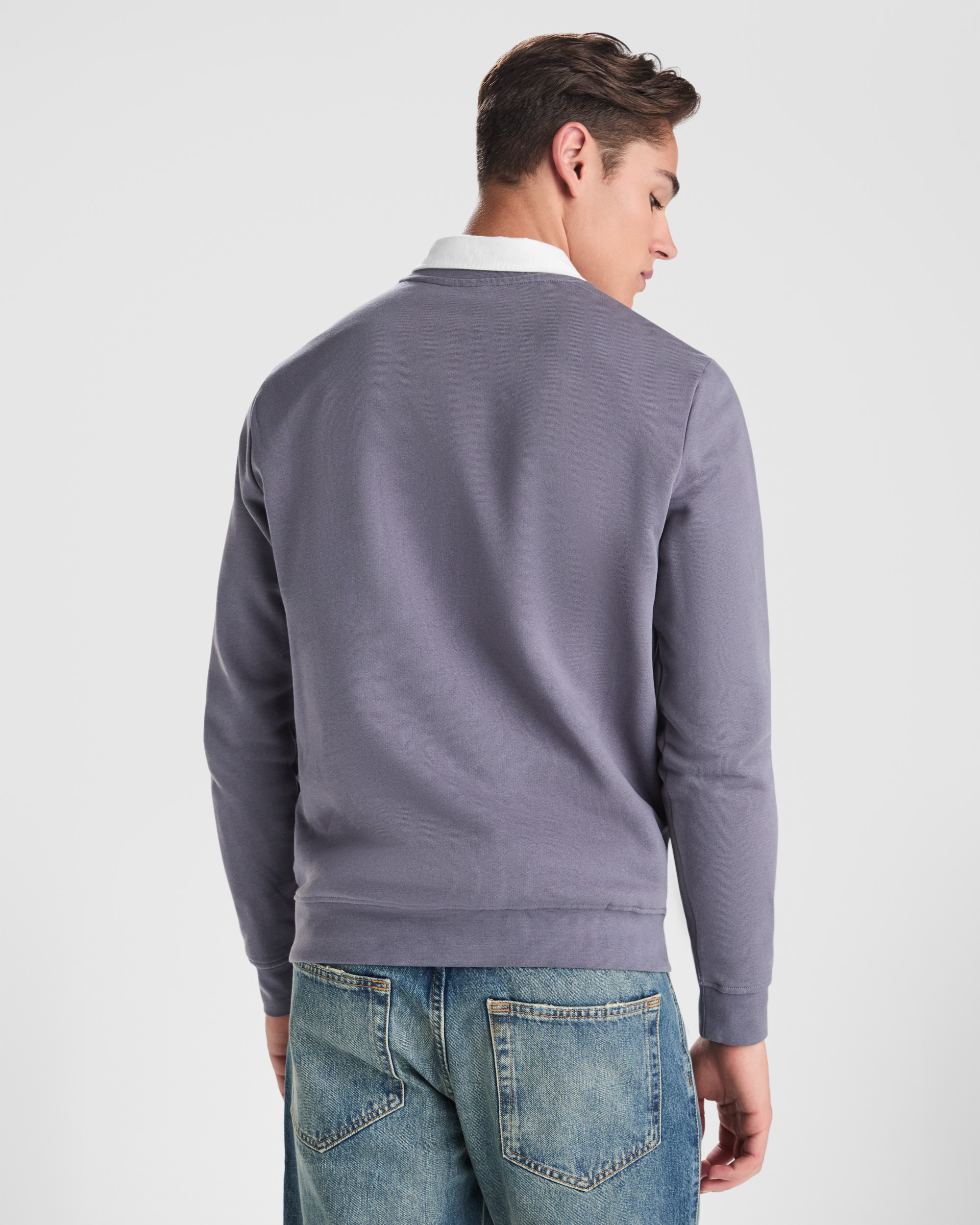 Sudadera unisex cuello redondo. Cuello, puños y cinturilla en canalé 2×1 con elastano. Cubrecosturas del mismo tejido.