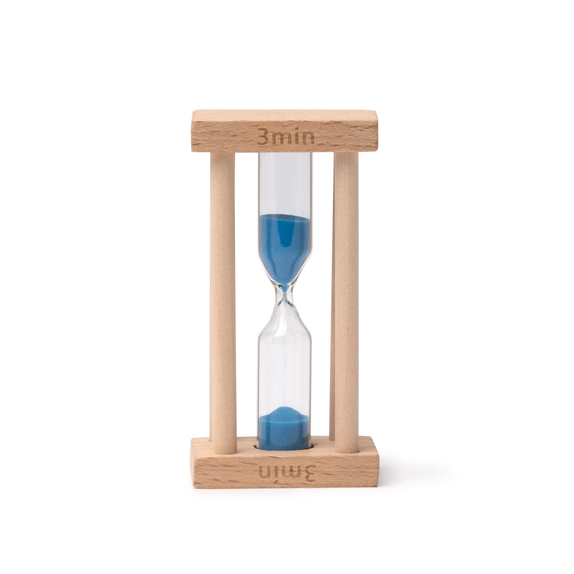 Reloj de arena con duración de 3 minutos insertado en una estructura de madera, que le confiere elegancia a la vez que resistencia.