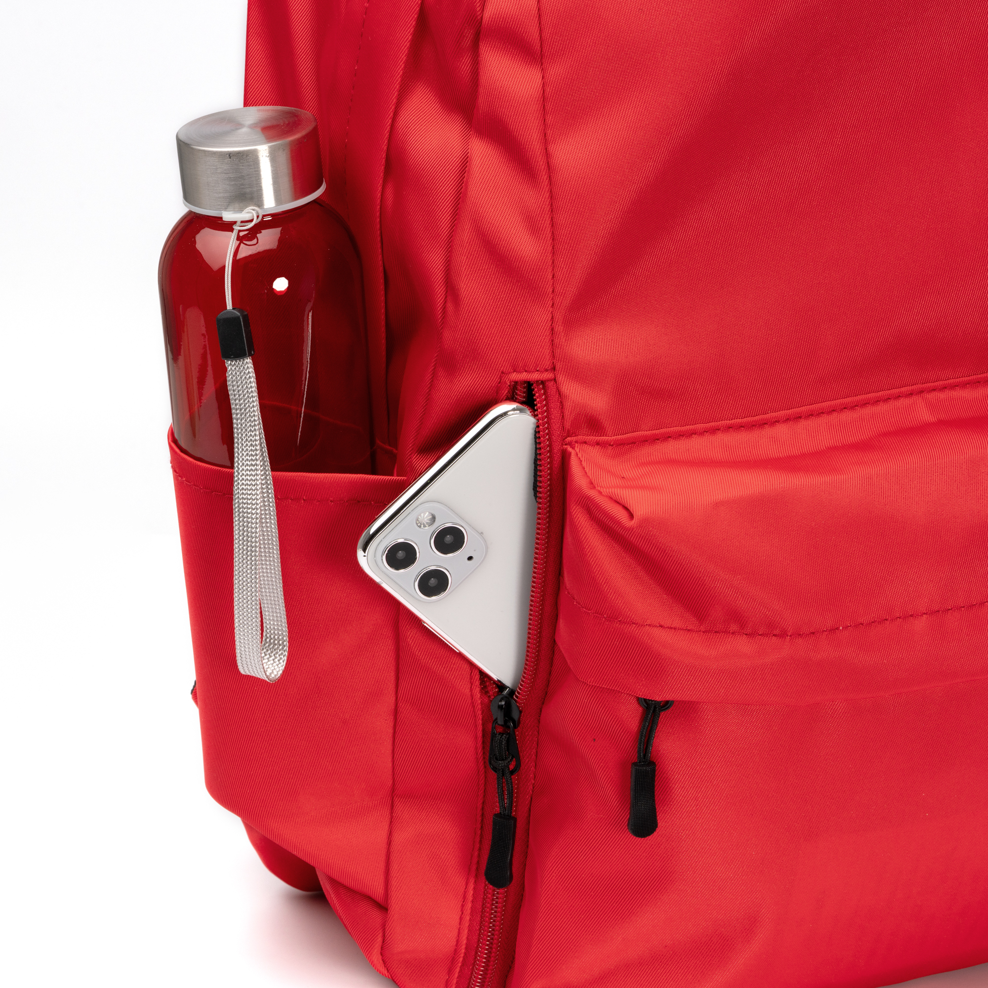 Mochila elaborada en nylon reciclado 420D. En su compartimento principal cuenta con un bolsillo para el transporte de dispositivos como un ordenador portátil de hasta 15″. Dos bolsillos laterales para el transporte de enseres como botellas de agua. Dos compartimentos frontales con cierres de cremallera horizontal y vertical. Con costuras a conjunto del color de la mochila y asas y espalda acolchadas ofreciendo mayor comodidad.