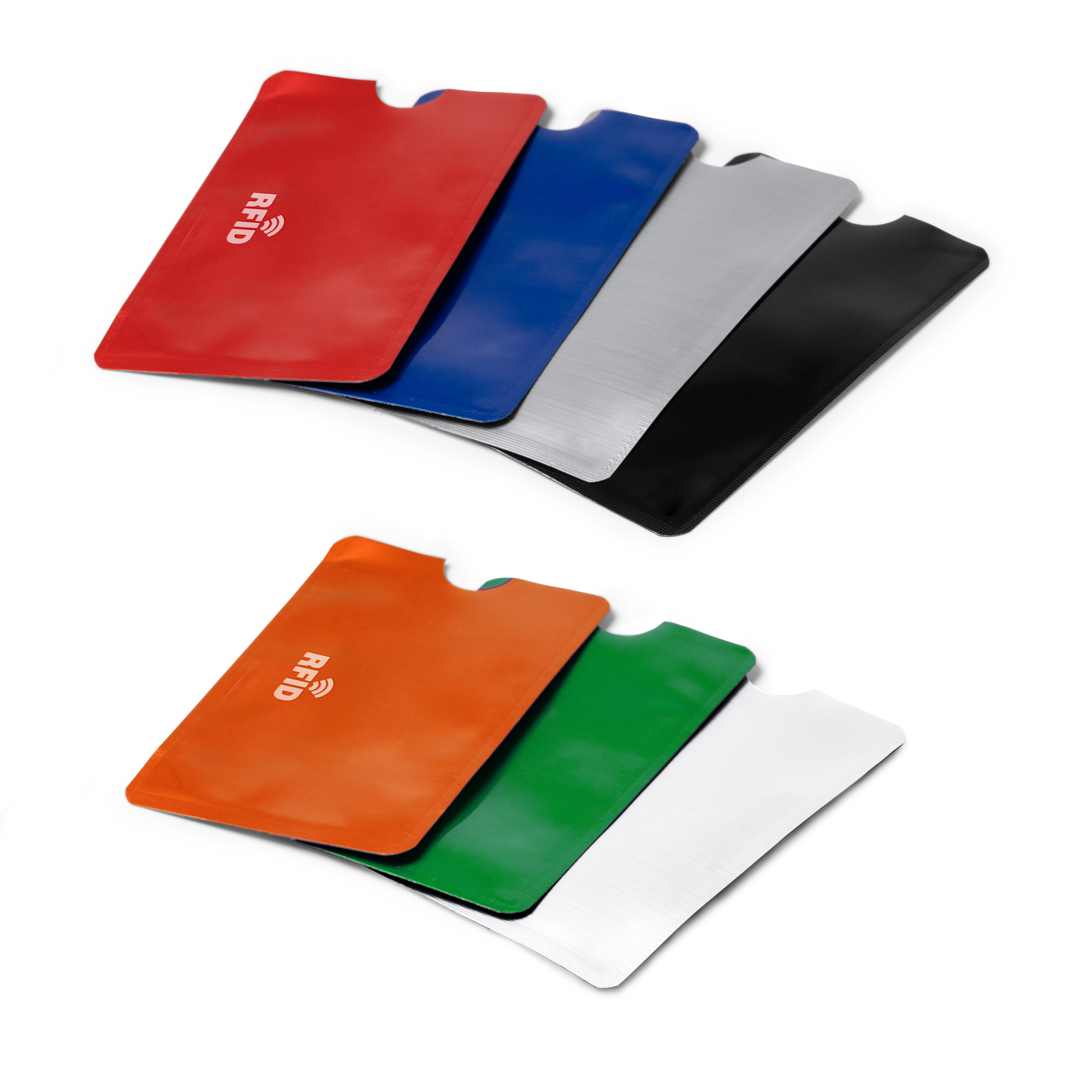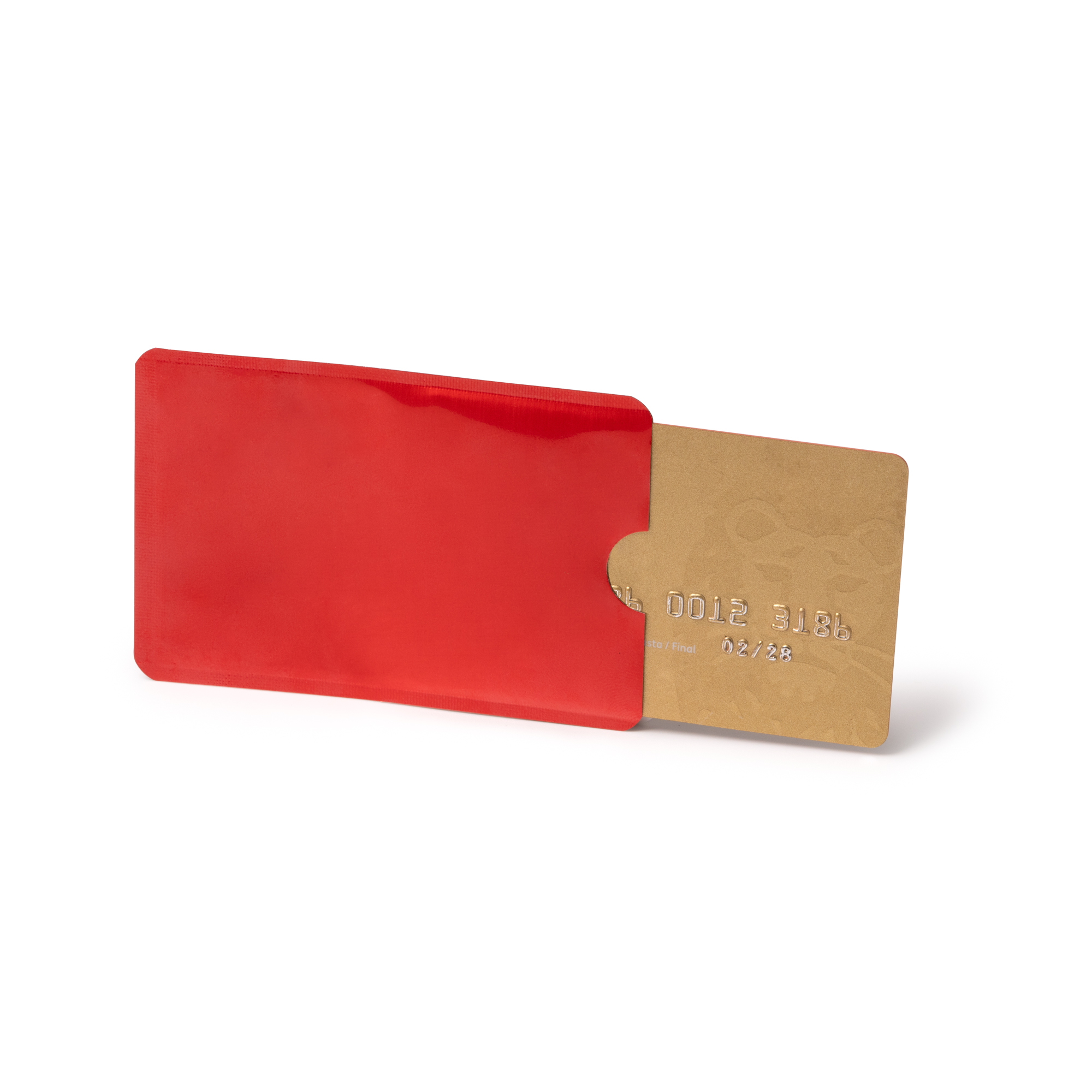 Tarjetero con sistema de seguridad RFID con acabado en aluminio. Una opción segura y práctica para el cuidado de tus tarjetas.