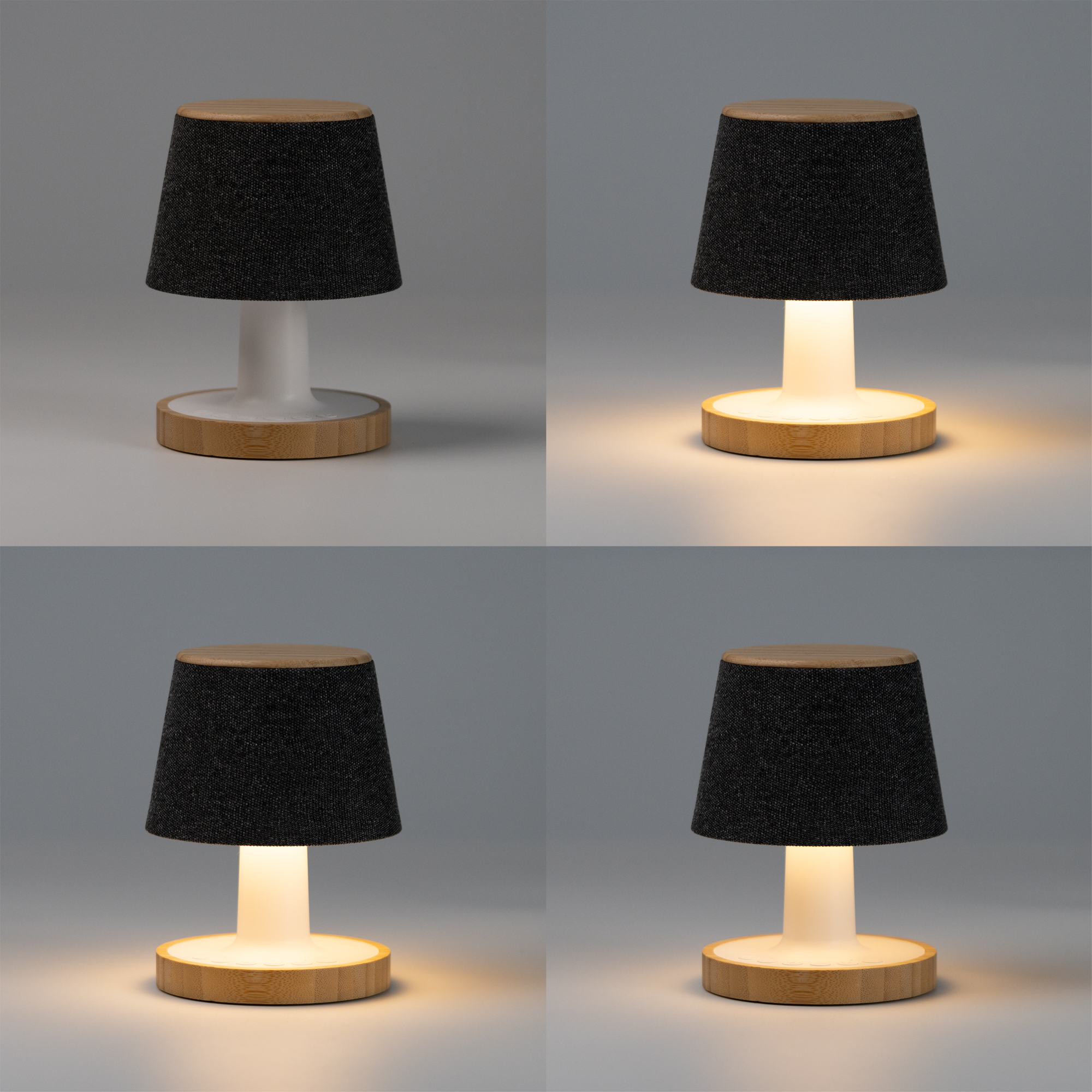 Lámpara altavoz con potencia de 5W, realizada en poliéster reciclado R-PET con detalles en bambú. Incluye función de temporizador e indicador de tiempo, con intervalos desde 30 hasta 90 minutos para el apagado automático. Con tres modos de iluminación: blanca, neutra y cálida. El altavoz incorpora 6 sonidos relajantes, conexión Bluetooth e indicador LED luminoso de conexión y de carga. Tiempo máximo de funcionamiento alrededor de 5 horas y hasta 10 metros de distancia máxima.