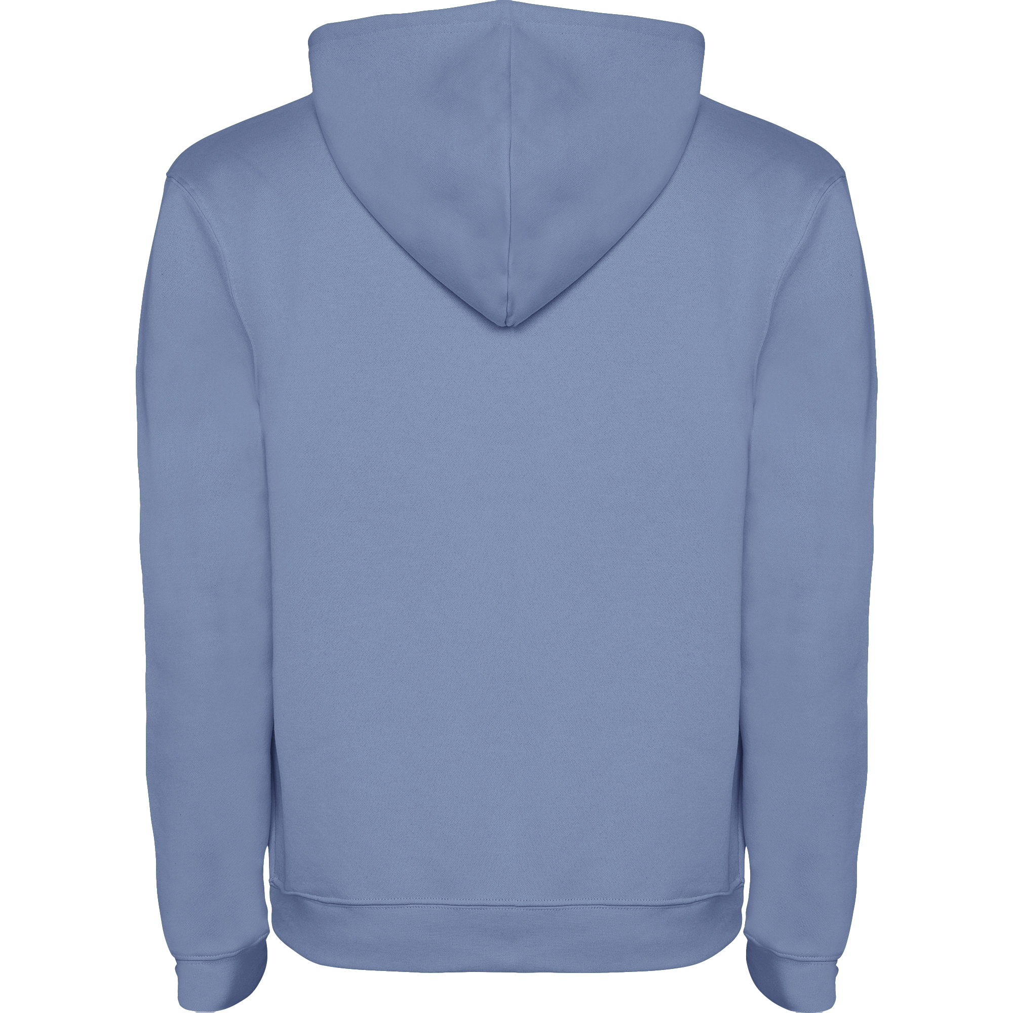 Sudadera con capucha forrada. Puños y cinturilla en canalé 2×1 con elastano. Cubrecosturas del mismo tejido. Cordón plano en capucha. Opciones de colores con capucha a contraste y ojales metálicos al tono.