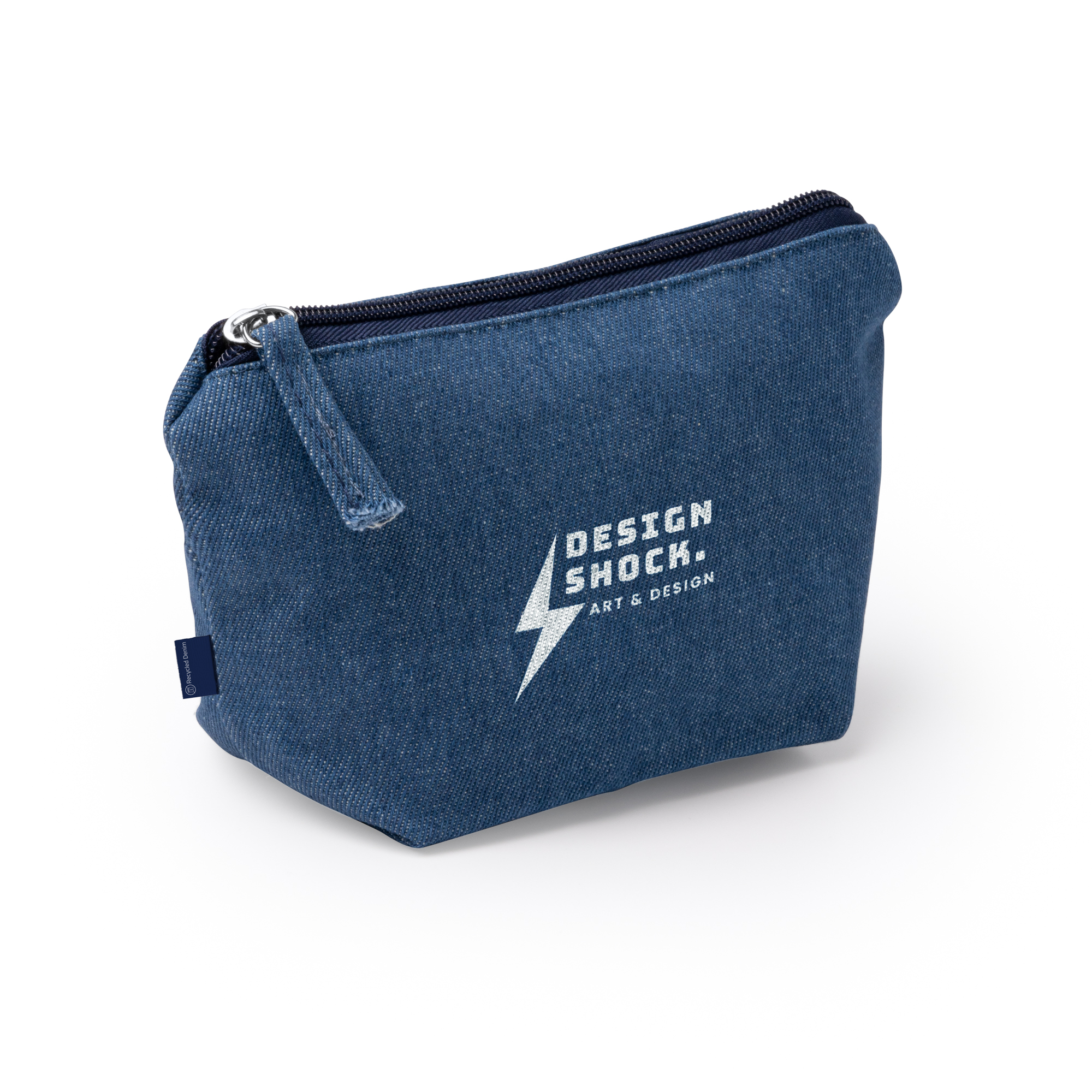 Neceser realizado en tejido vaquero reciclado con cierre de cremallera a juego.